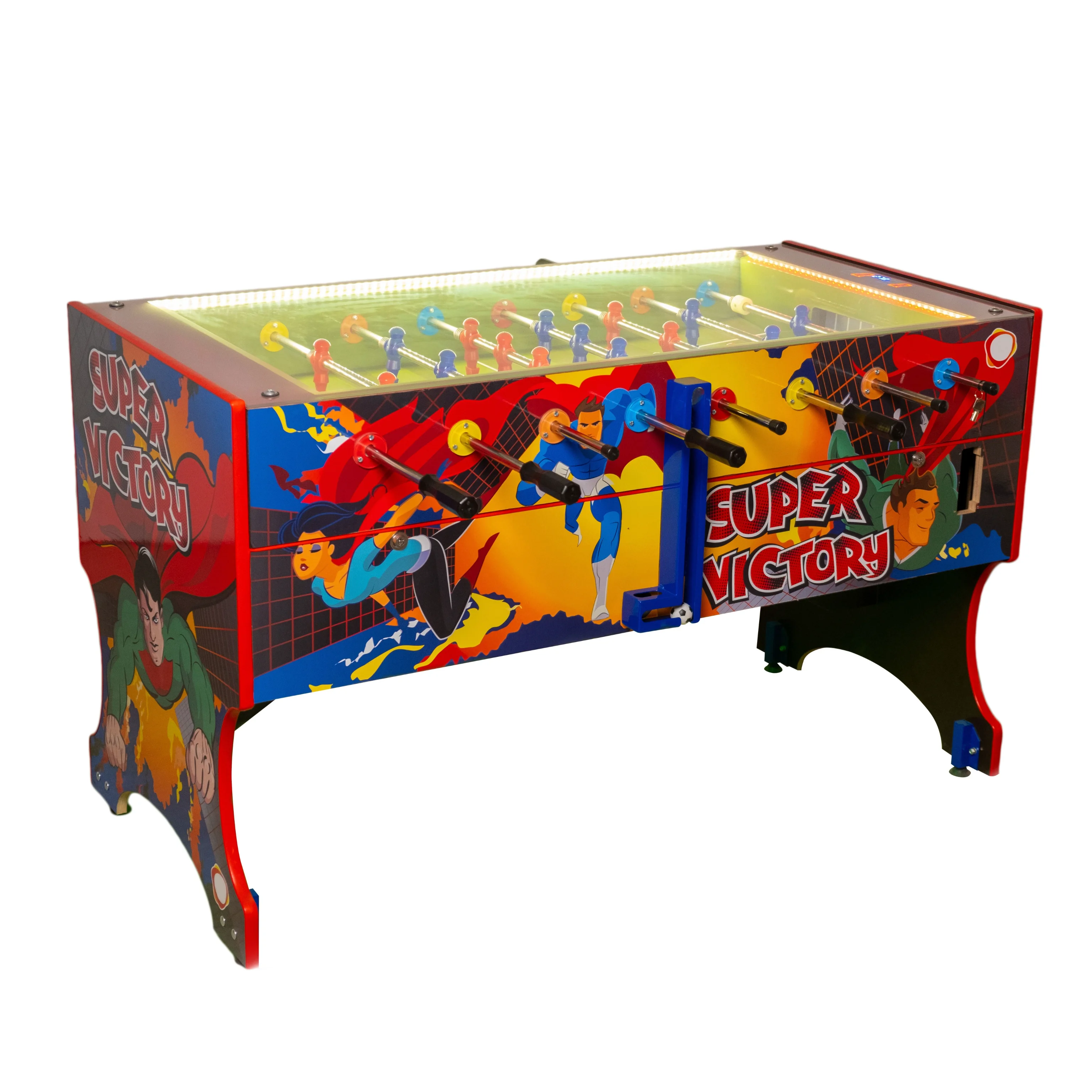 Настольный футбол «Victory» — это динамичная и азартная игра, которая одинаково увлекает детей и взрослых. Аппарат выполнен в ярком дизайне, оснащён световыми эффектами и звуковым сопровождением на русском языке, что делает игру ещё более атмосферной. Благодаря надёжной конструкции и простоте эксплуатации, «Victory» стал одним из самых популярных коммерческих аппаратов с быстрой окупаемостью.