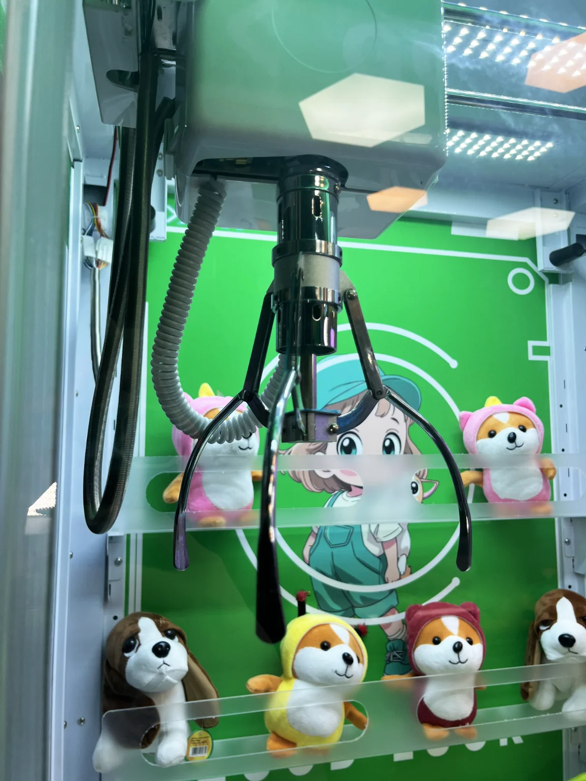 Управляется механизм хватайки рычагом и кнопкой. С помощью этого автомата дети смогут проявить свою ловкость и усидчивость, маневрируя механической «рукой» пытаясь захватить разноцветные игрушки или предметы, разбросанные внутри автомата!