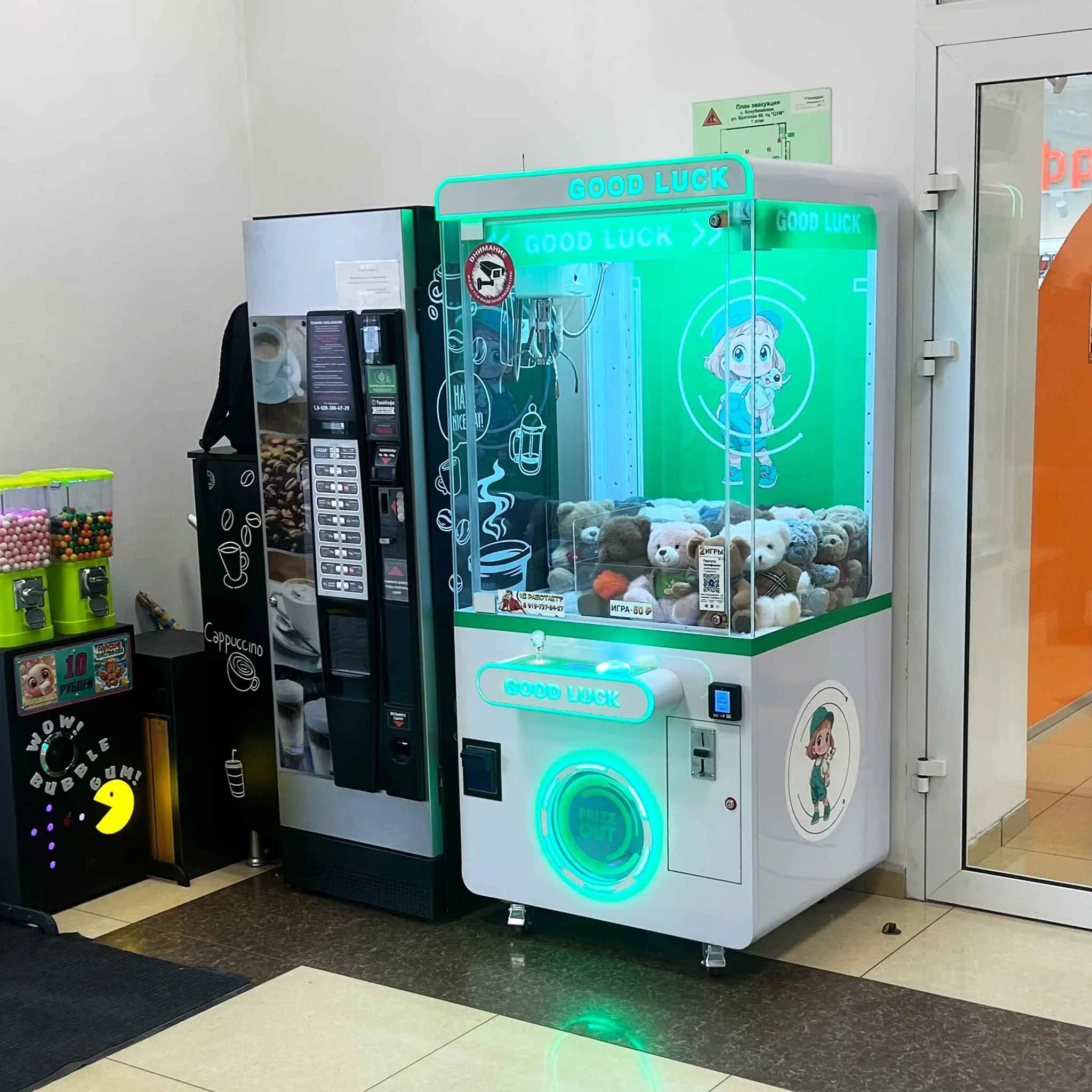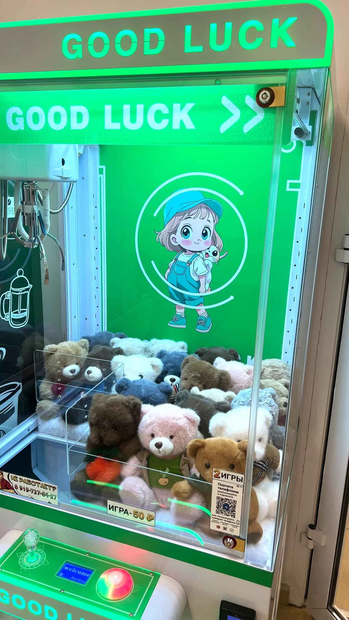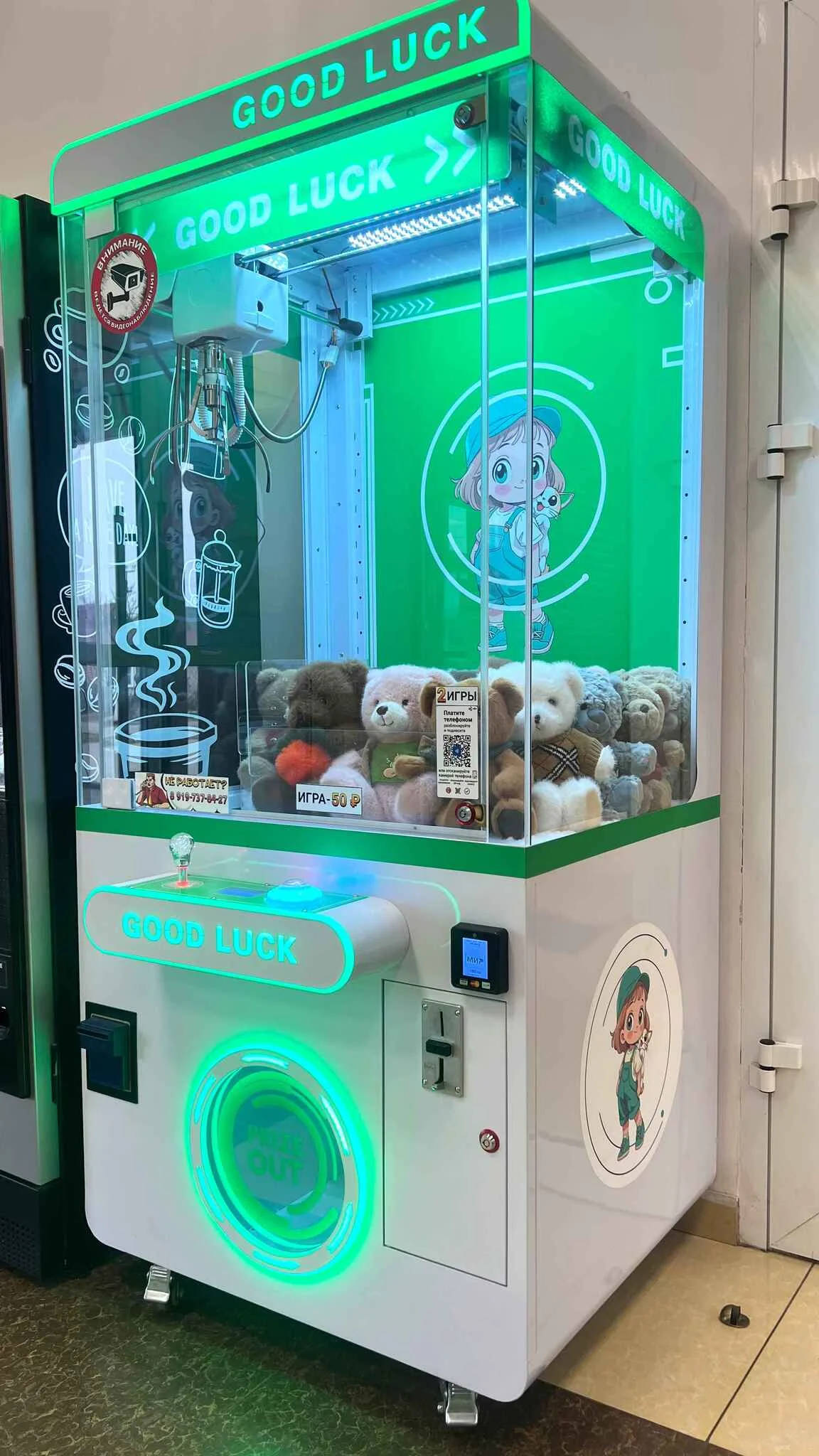 Автомат кран машина, изготовленный из качественных материалов и красиво оформленный! Интересный вид автомата, яркая LED подсветка и азартная игра с интересными призами - точно привлечет внимание клиентов всех возрастов!
