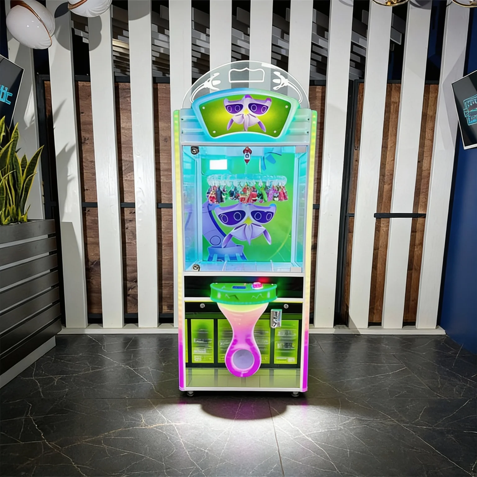 Встречайте! Новый автомат прищепка, изготовленный из качественных материалов и красиво оформленный! Большая интересная витрина автомата прозрачная с трёх сторон, яркая LED подсветка и азартная игра с интересными призами - точно привлечет внимание клиентов всех возрастов!