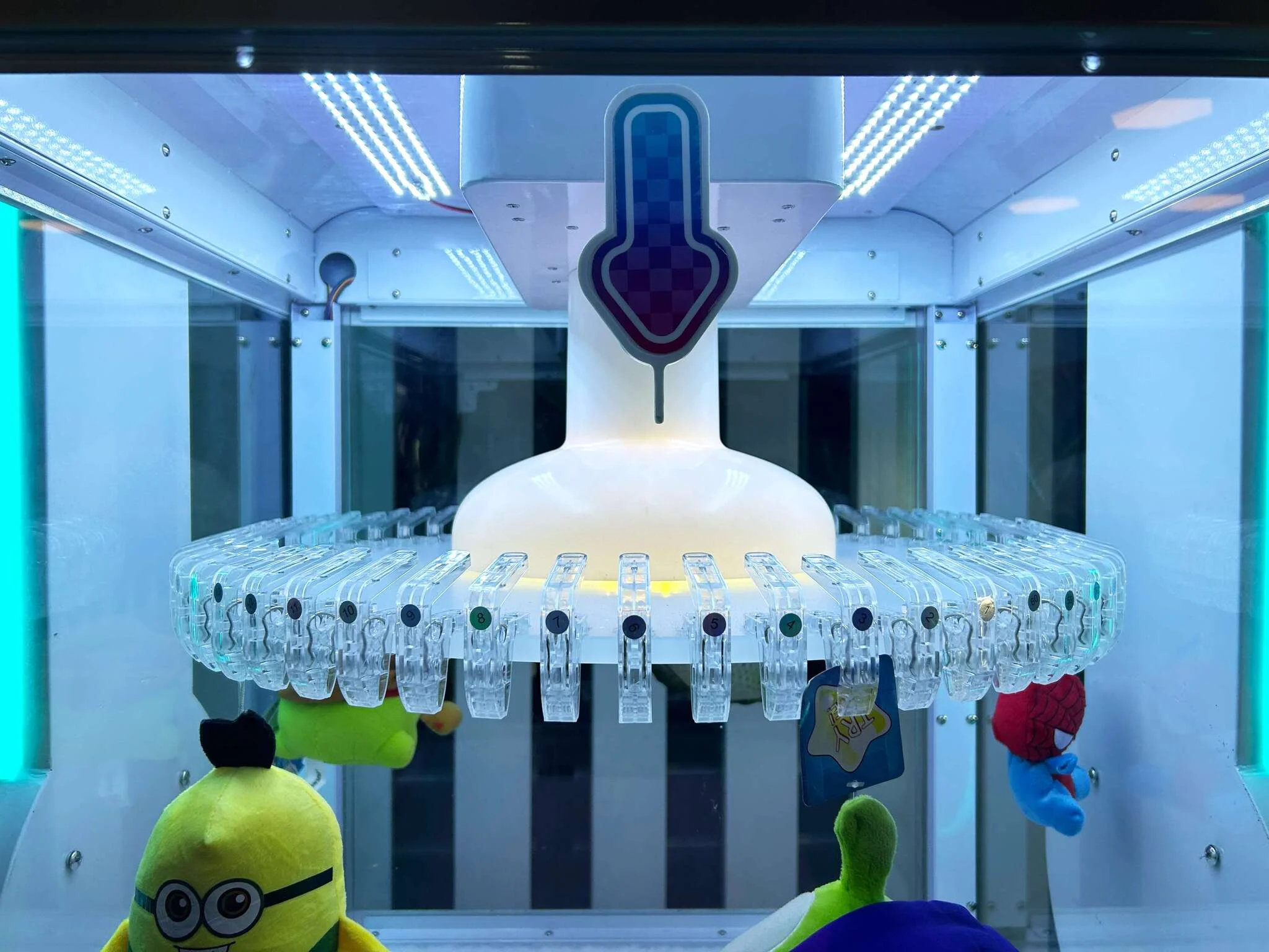 - Игровой процесс: умело нажимайте на прищепки так, чтобы призы упали внутрь и активировали механизм выдачи;