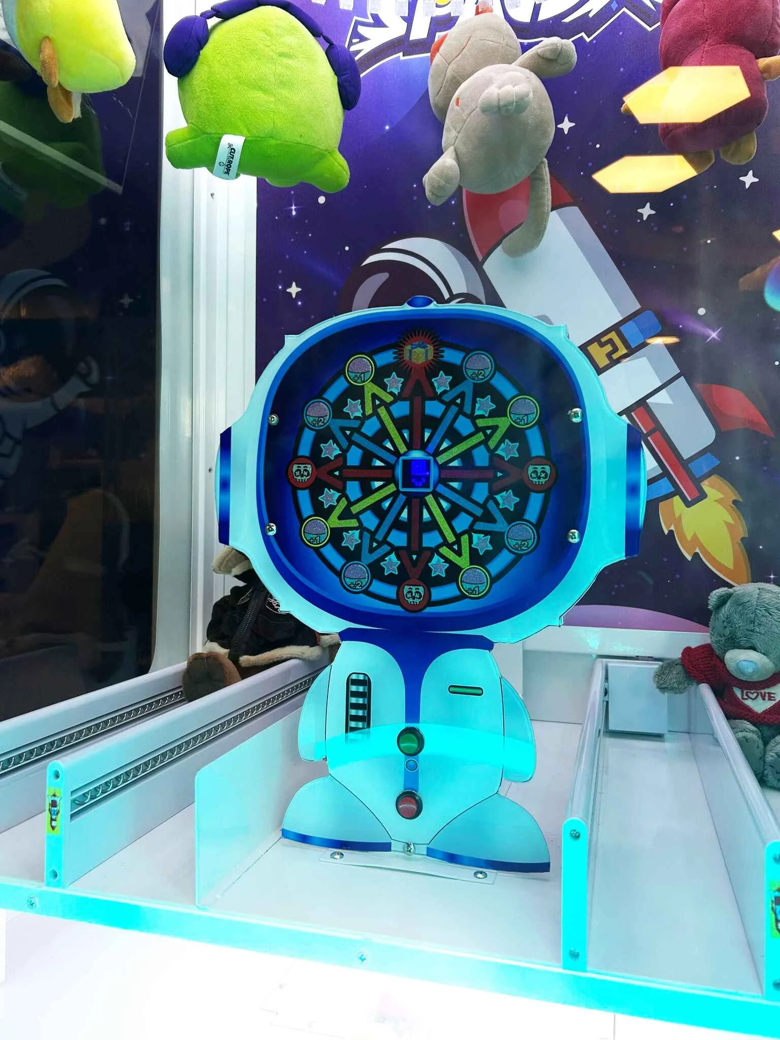 Но это ещё не всё! Если в первой игре не удастся выиграть игрушку с прищепки, у игрока есть возможность попытать удачу в рулетке и получить 1-2 капсулы с игрушками или «Секретный бокс». При составлении бокса помните, что приз в нём должен быть поощрительным, а не основным.