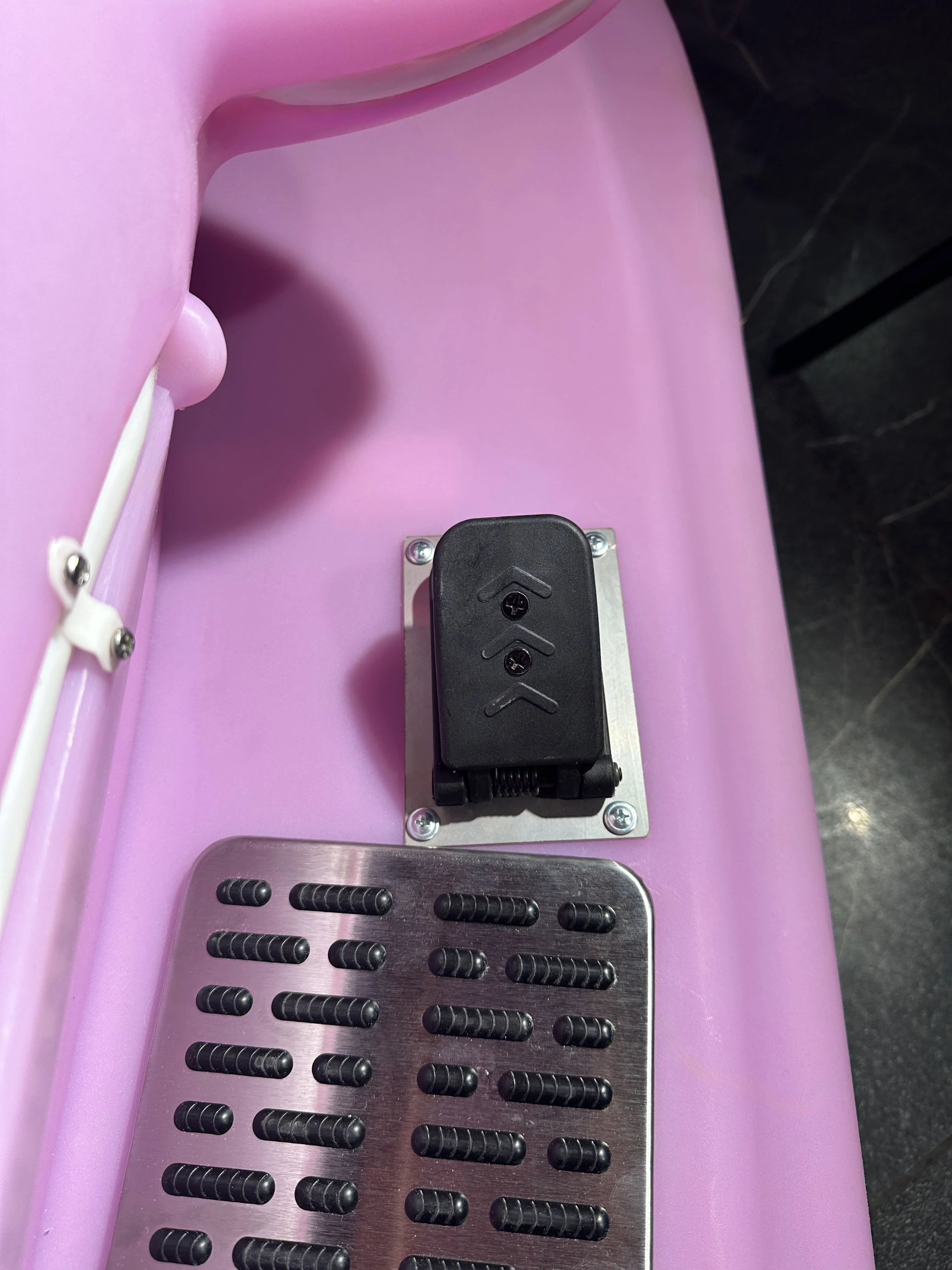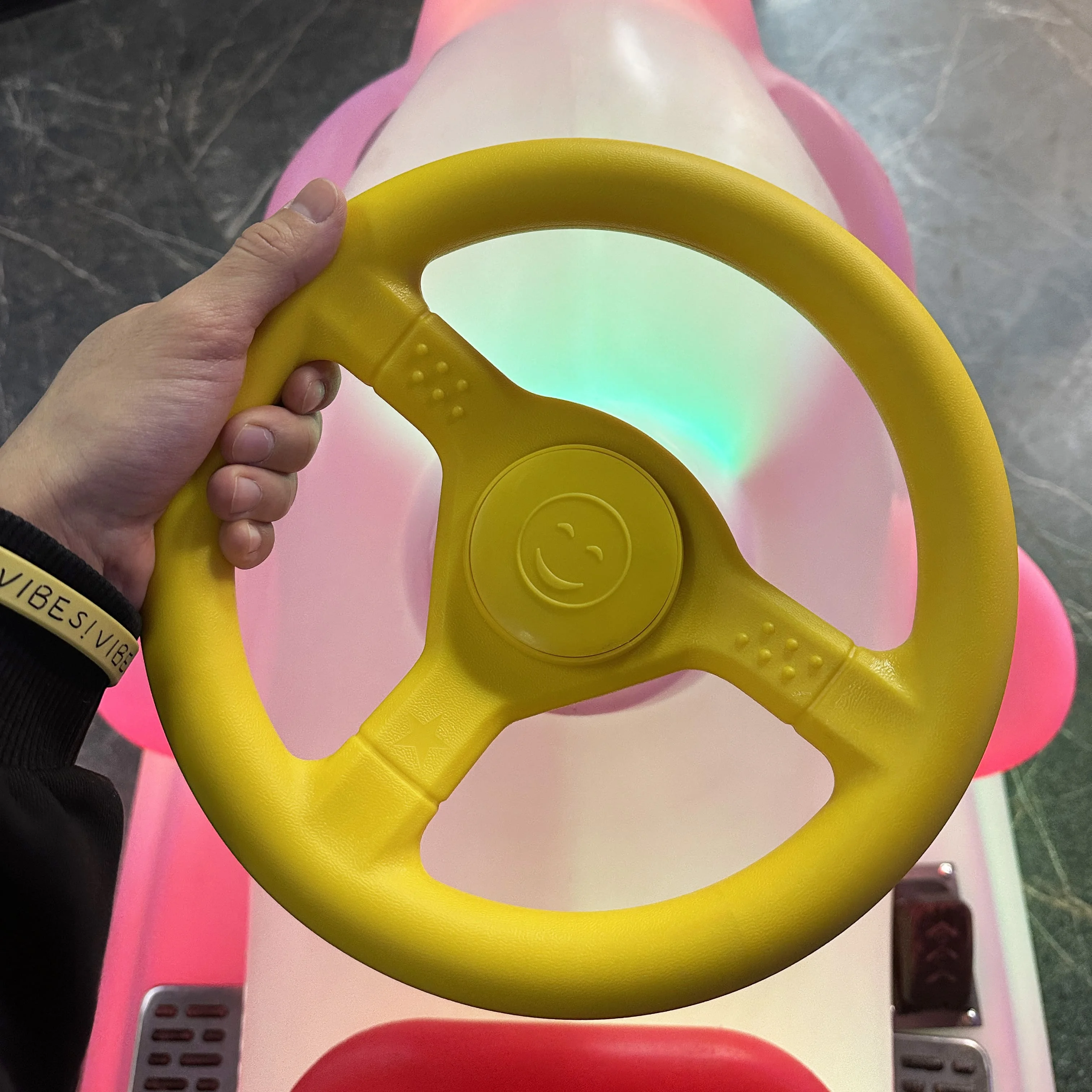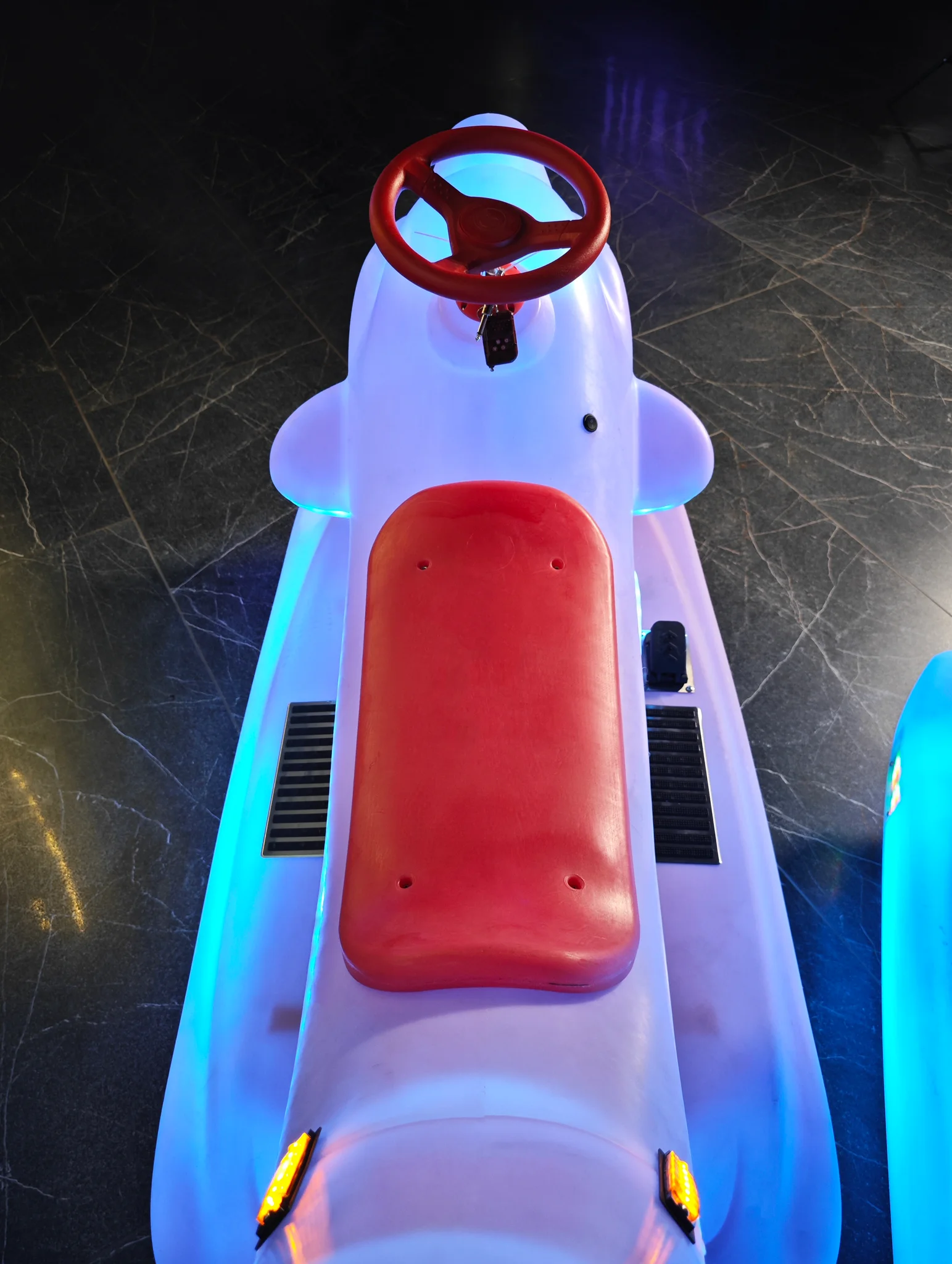 - Мобильность, которая достигается с помощью удобного руля управления, позволяющего плавно выполнять повороты, педалью движения, а также кнопками управления скорости, заднего хода и предупреждающего сигнала;