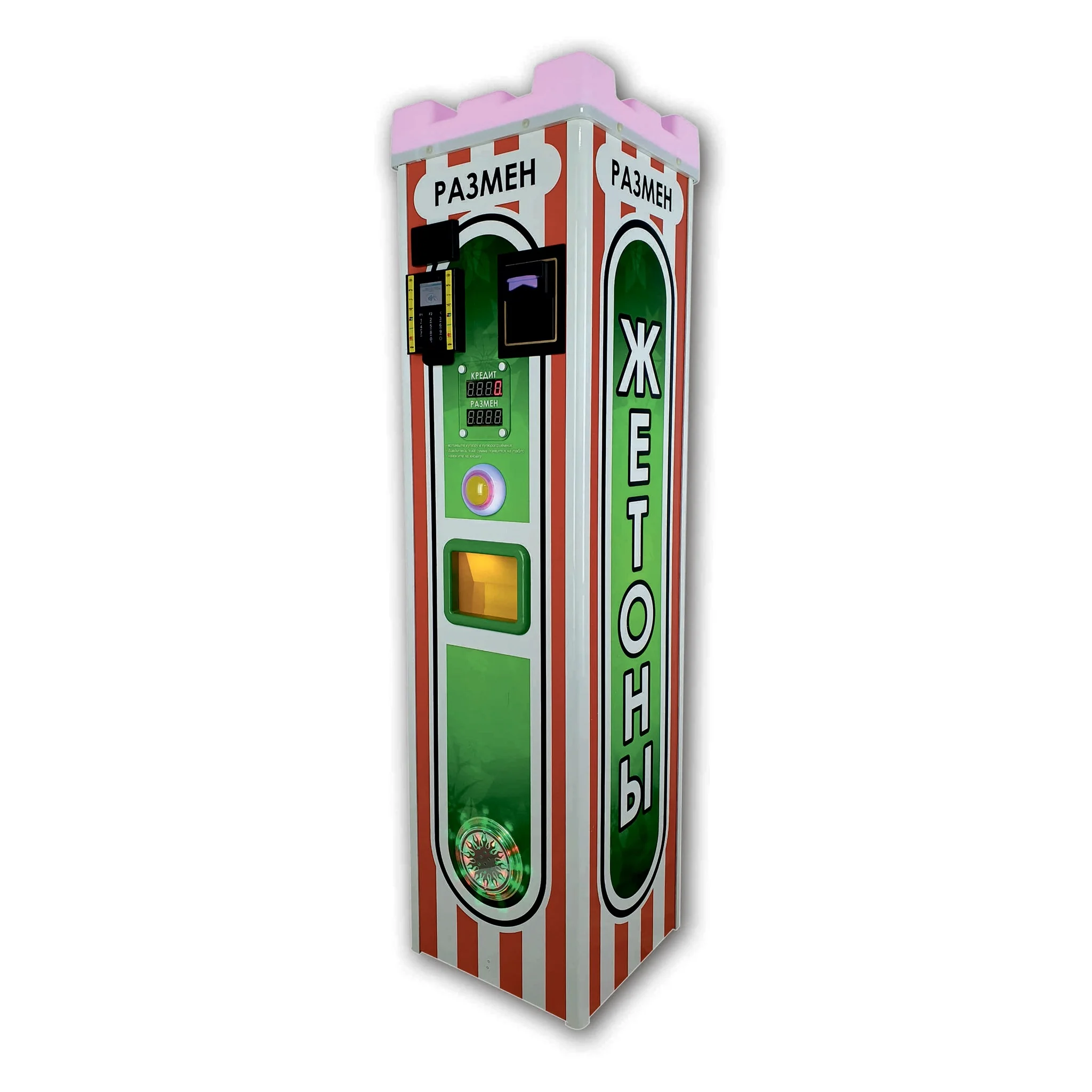 Простой в использовании и надёжный в работе — разменный автомат идеально подходит для игровых зон, аттракционов, парков развлечений и торговых центров. Посетители самостоятельно вносят оплату, видят на дисплее сумму и количество доступных жетонов или монет, нажимают кнопку — и получают свою покупку прямо в лоток выдачи.