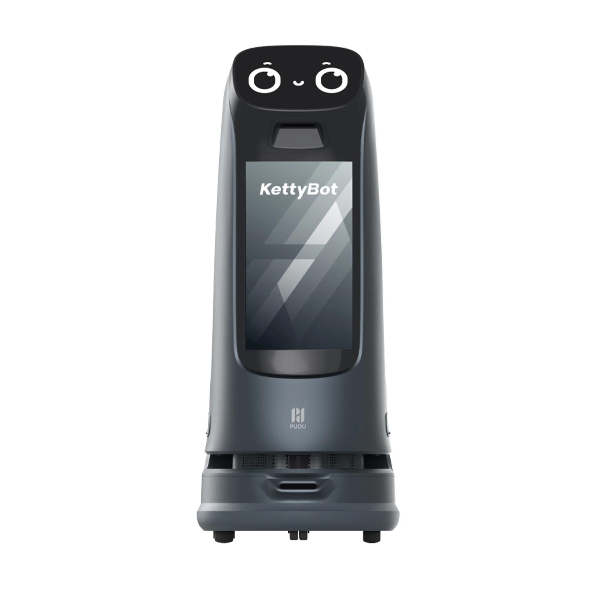 «KettyBot» Отличается от других моделей PUDU наличием рекламного экрана, более компактными размерами, соответственно большей мобильностью, и функцией автоматической подзарядки.