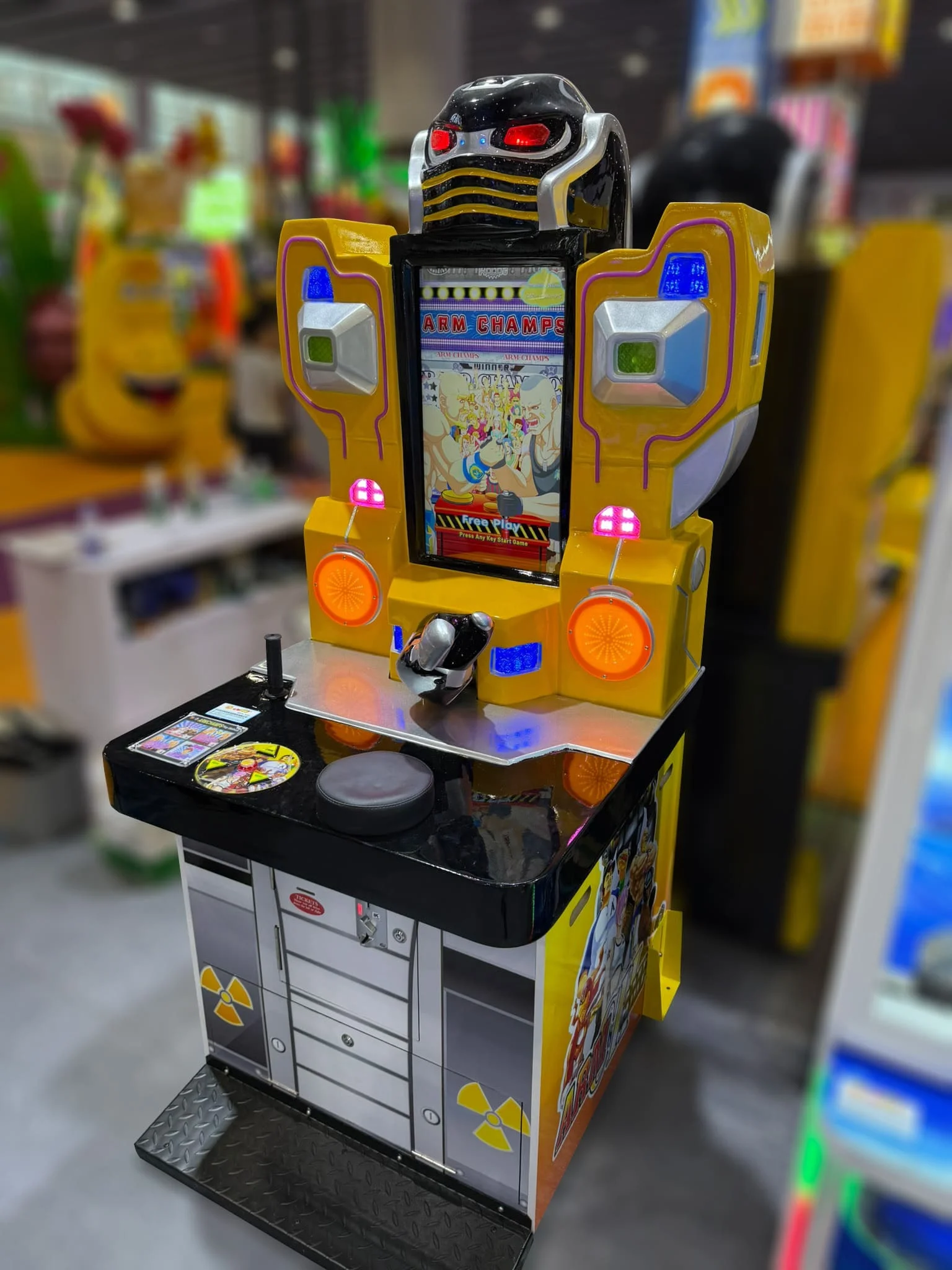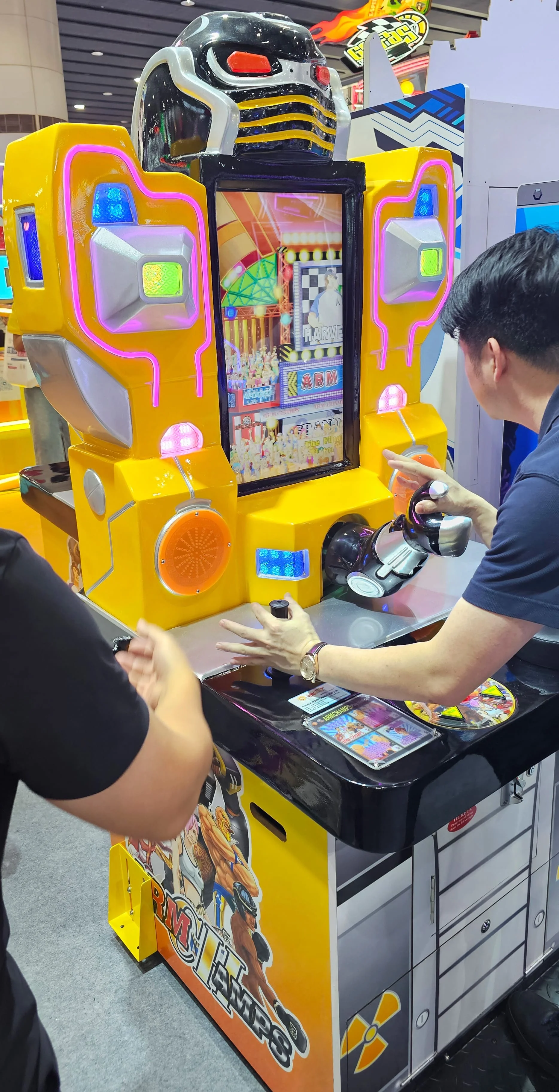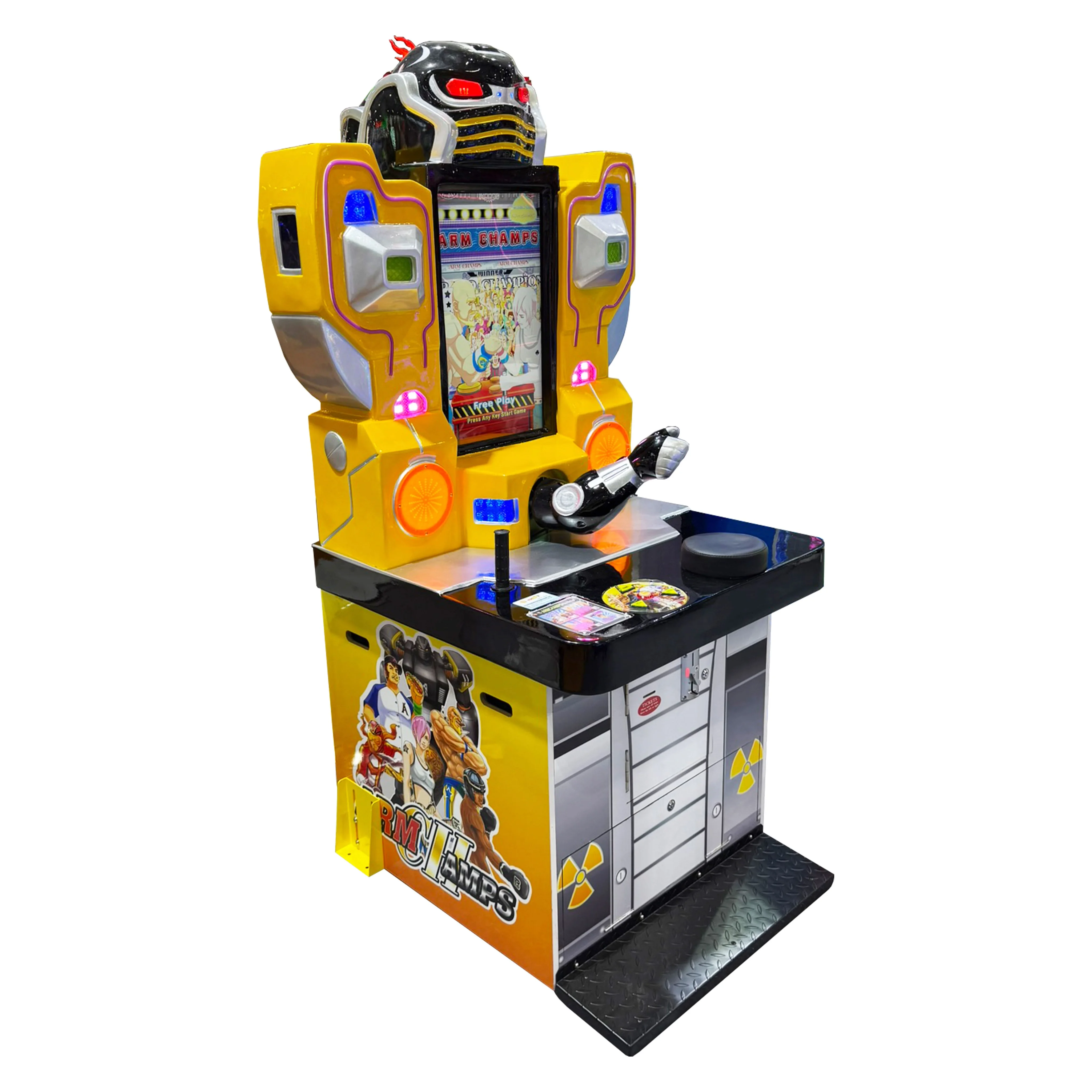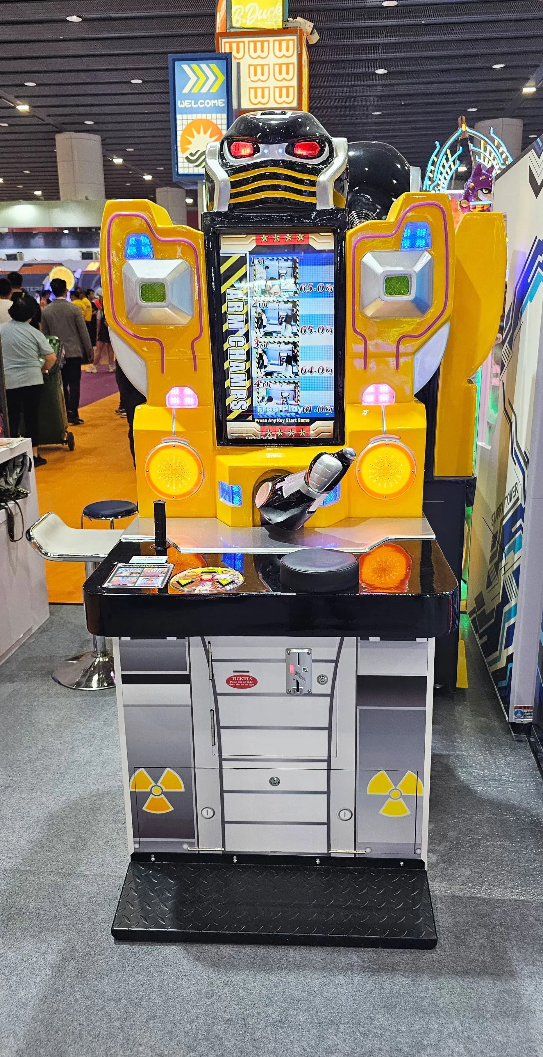 Интерактивный силомер для проверки силы и ловкости в поединке с механическим противником. Автомат имитирует настоящий армрестлинг, позволяя игрокам сразиться с мощным роботом, который реагирует на силу и скорость участника.