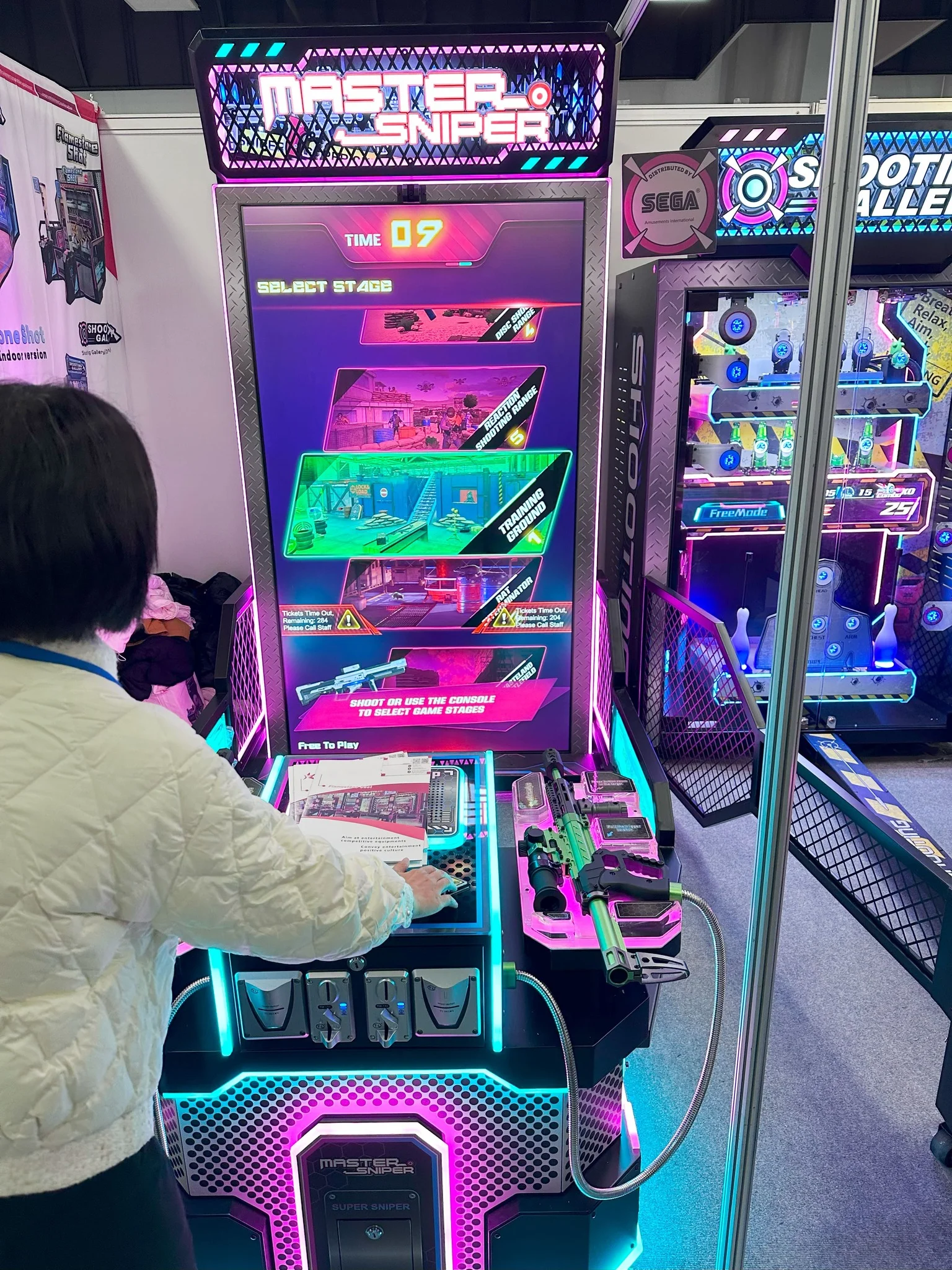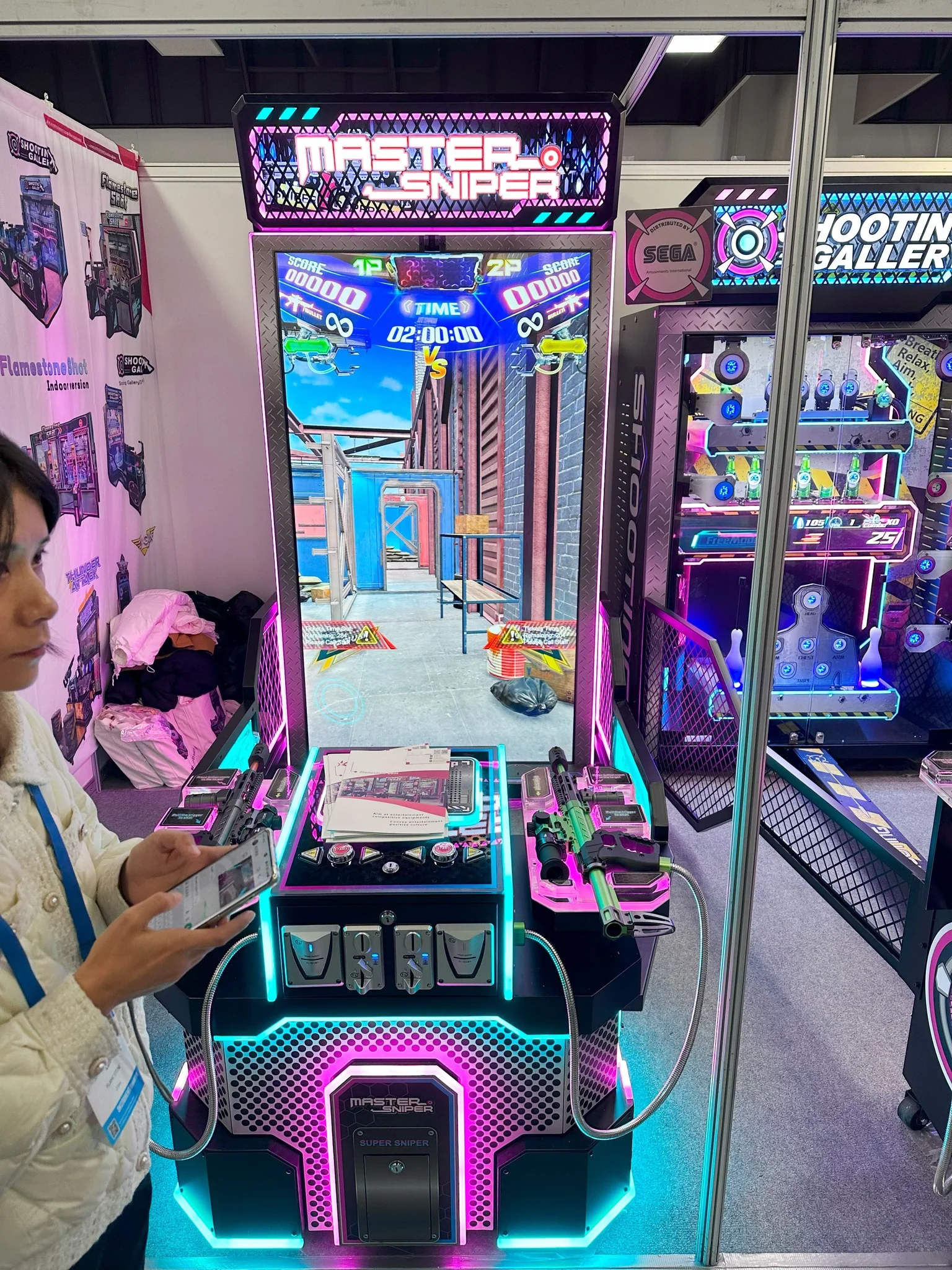 "Master Sniper" оснащён высокочувствительными датчиками, которые точно фиксируют попадания. Экран 86 дюймов отображает очки, время и доступные режимы игры. Звуковые эффекты через встроенные динамики и световые сигналы усиливают азарт, а прочный корпус из листовой стали и акрила гарантирует долговечность.