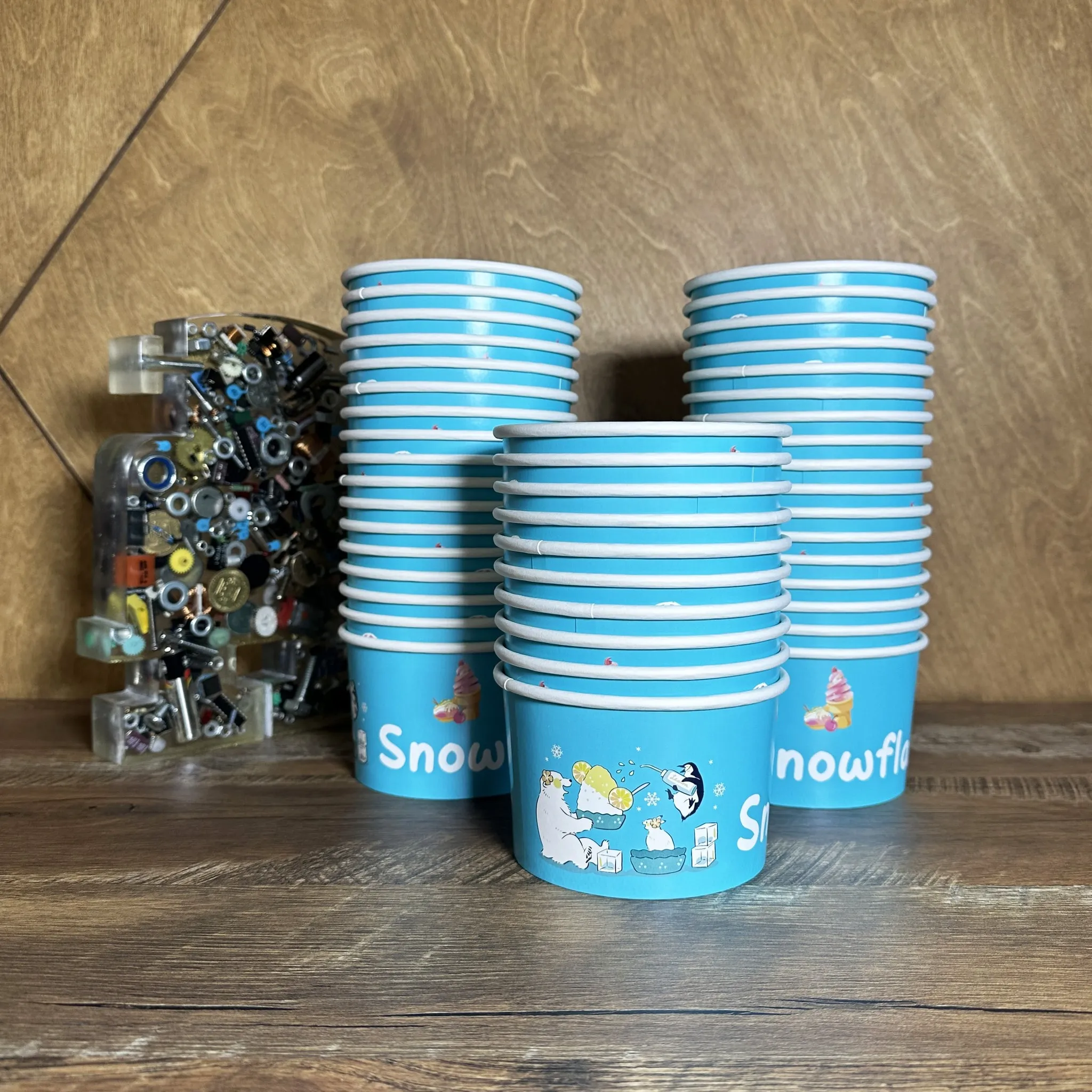 Идеальный выбор для автомата по приготовлению мороженого «Фруктовый снег» — стильные, прочные и удобные стаканчики, идеально подходящие по размеру и форме к автомату.