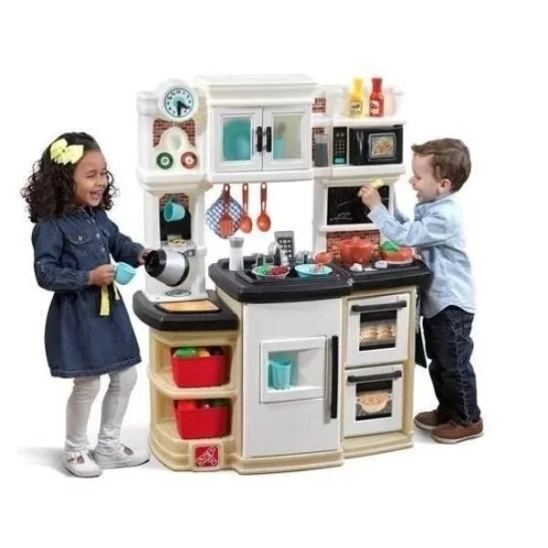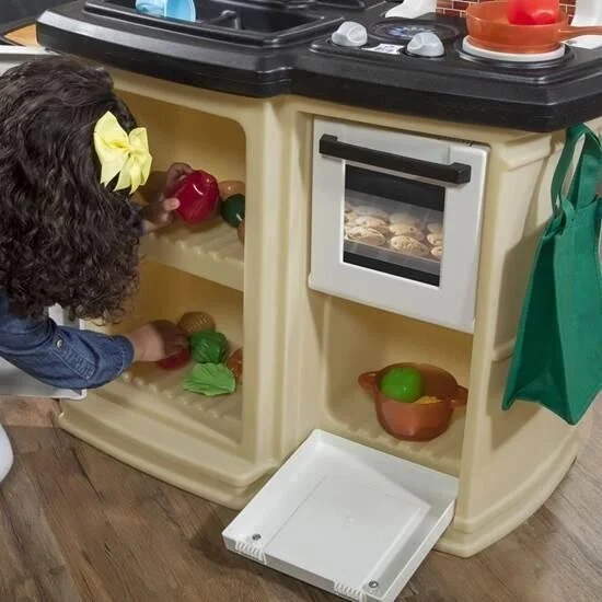 Маленькие поварята с удовольствием приготовят себе еду на великолепной кухне Step 2 " Гурман". Ведь это: - Стильная кухня в современном стиле с двойной встроенной духовкой для веселых совместных игр. На грифельной доске очень удобно написать список покупок. Малыши смогут научиться определять время при помощи часов с движущимися стрелками.