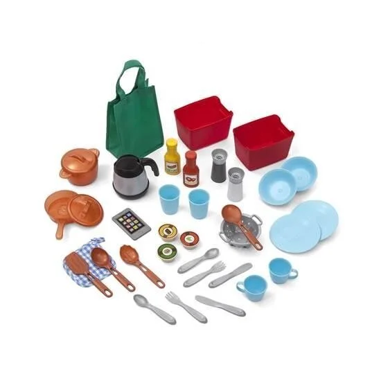 Объясните детям необходимость сортировать отходы на примере специального контейнера и корзинки для мусора. Раковина с поворачивающимся краном поможет «помыть» посуду. Встроенные ящички и полки помогут быстро рассортировать аксессуары по окончанию игры.