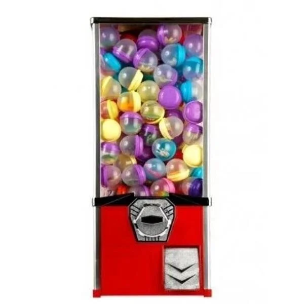 Отличный торговый автомат от китайской компании, не занимающий большого пространства, предназначен для продажи игрушек в капсулах. Яркий и привлекательный, легко впишется в дизайн любого помещения развлекательного характера. Очень простой в использовании и сверхнадёжный.