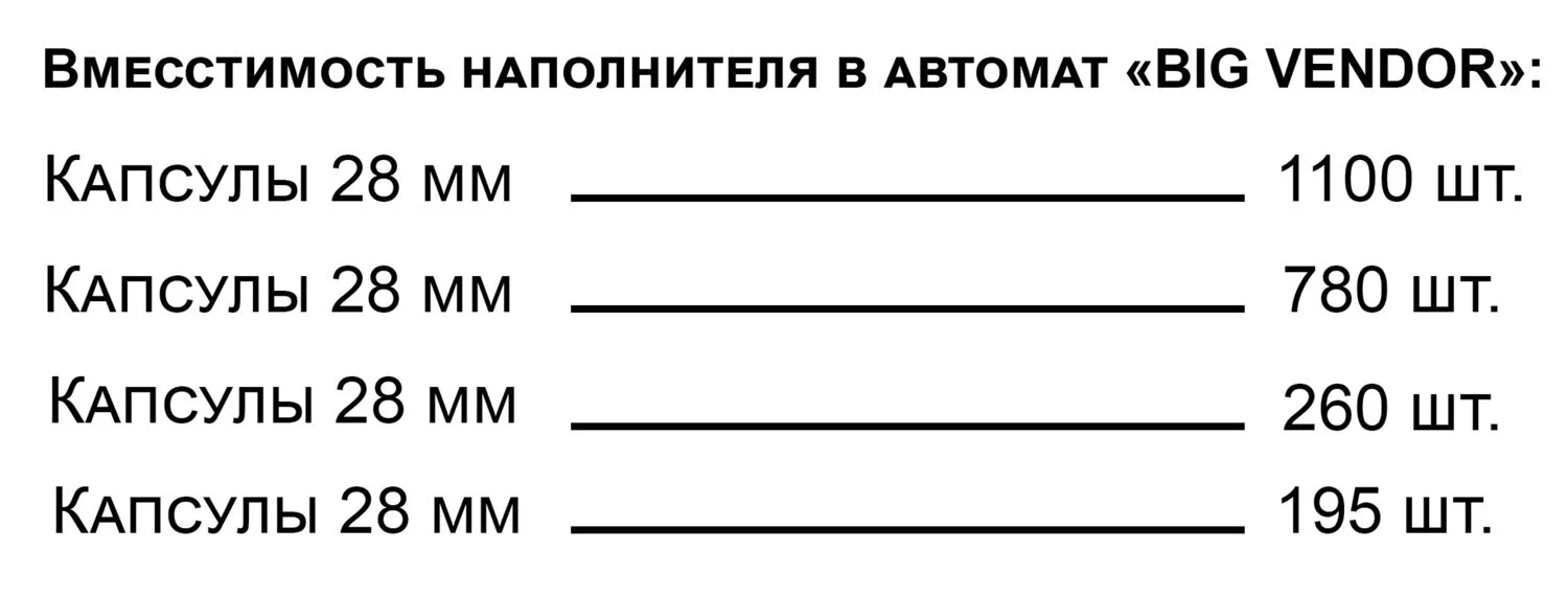 - В него может быть загружено очень большое количество различных сладостей, круглой формы, так как автомат очень вместительный;