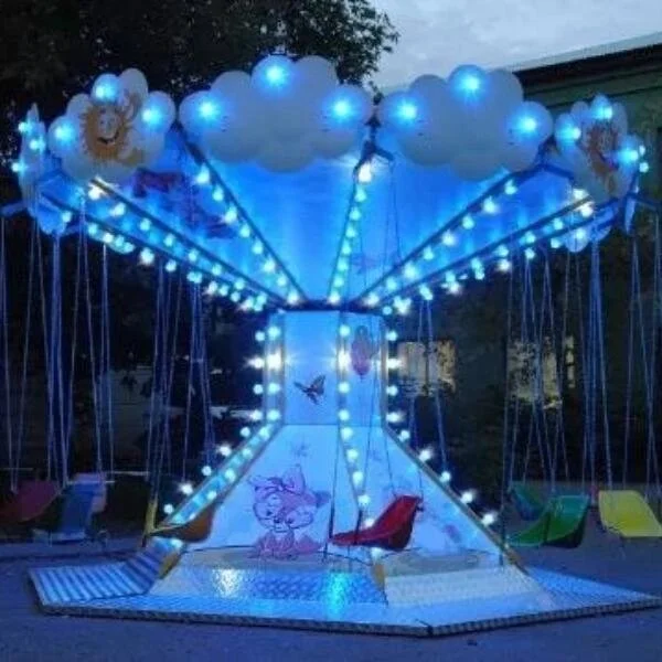 Карусель один из самых излюбленных аттракционов для детей, который захватывает дух, и оставляют море неизгладимых впечатлений. Представленная мобильная карусель имеет 12 мест для посадки подходящих для детей от 2 до 7 лет. Благодаря яркой иллюминации и музыкальному сопровождению, этот аттракцион можно устанавливать как карусель для ярмарок и других детских праздников.