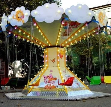 Данная карусель может использоваться как отдельным аттракционом, так и составляющей детской развлекательной площадки. Габариты карусели дают возможность помещать ее на площадке частного дома, так как она не слишком громоздкая.