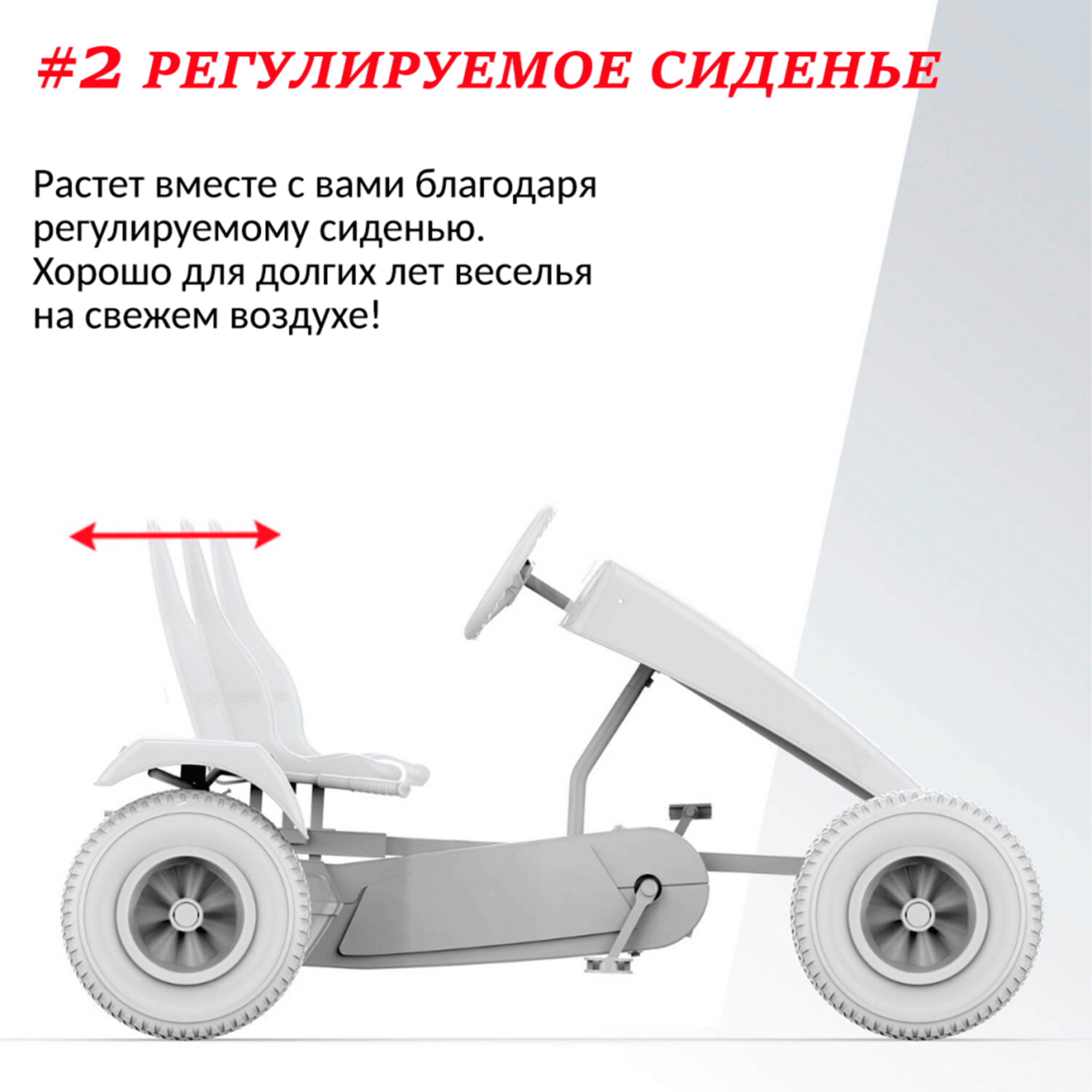 - Регулируемое сидение.