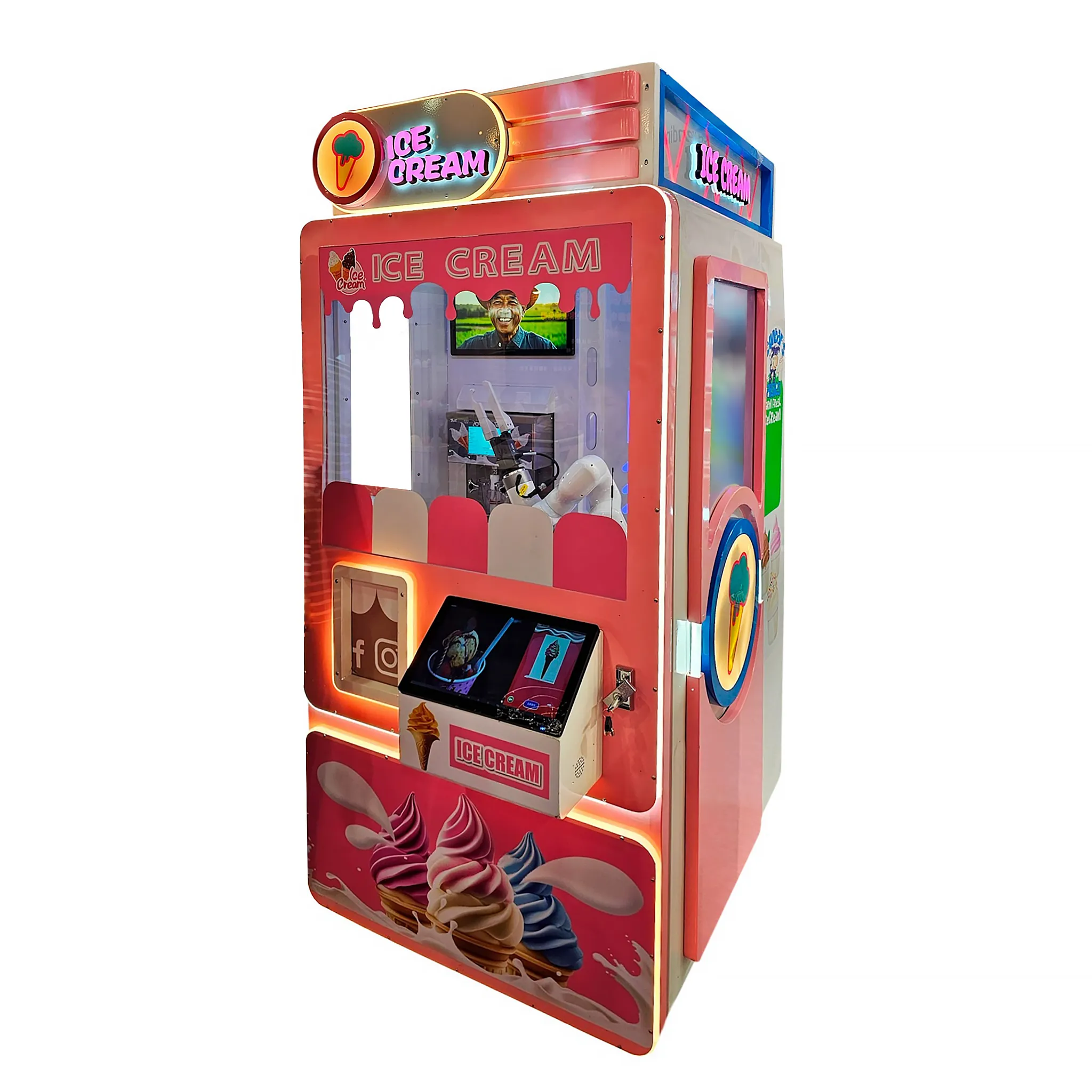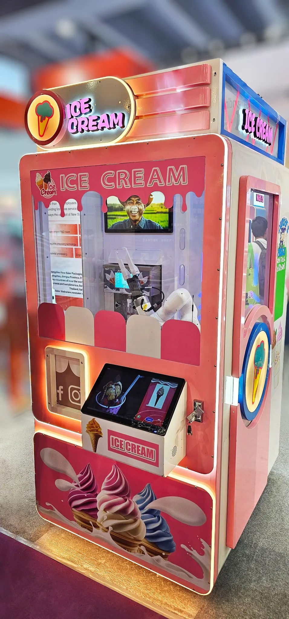 «IceBot Soft» - это полностью автоматизированный вендинговый автомат нового поколения, оснащённый роботизированной рукой и сенсорным управлением. Он создаёт мягкое мороженое в рожке по команде клиента - быстро, чисто и эффектно. Яркий дизайн, прозрачный фасад и шоу-процесс приготовления превращают покупку в развлечение, привлекая не только детей, но и взрослых.