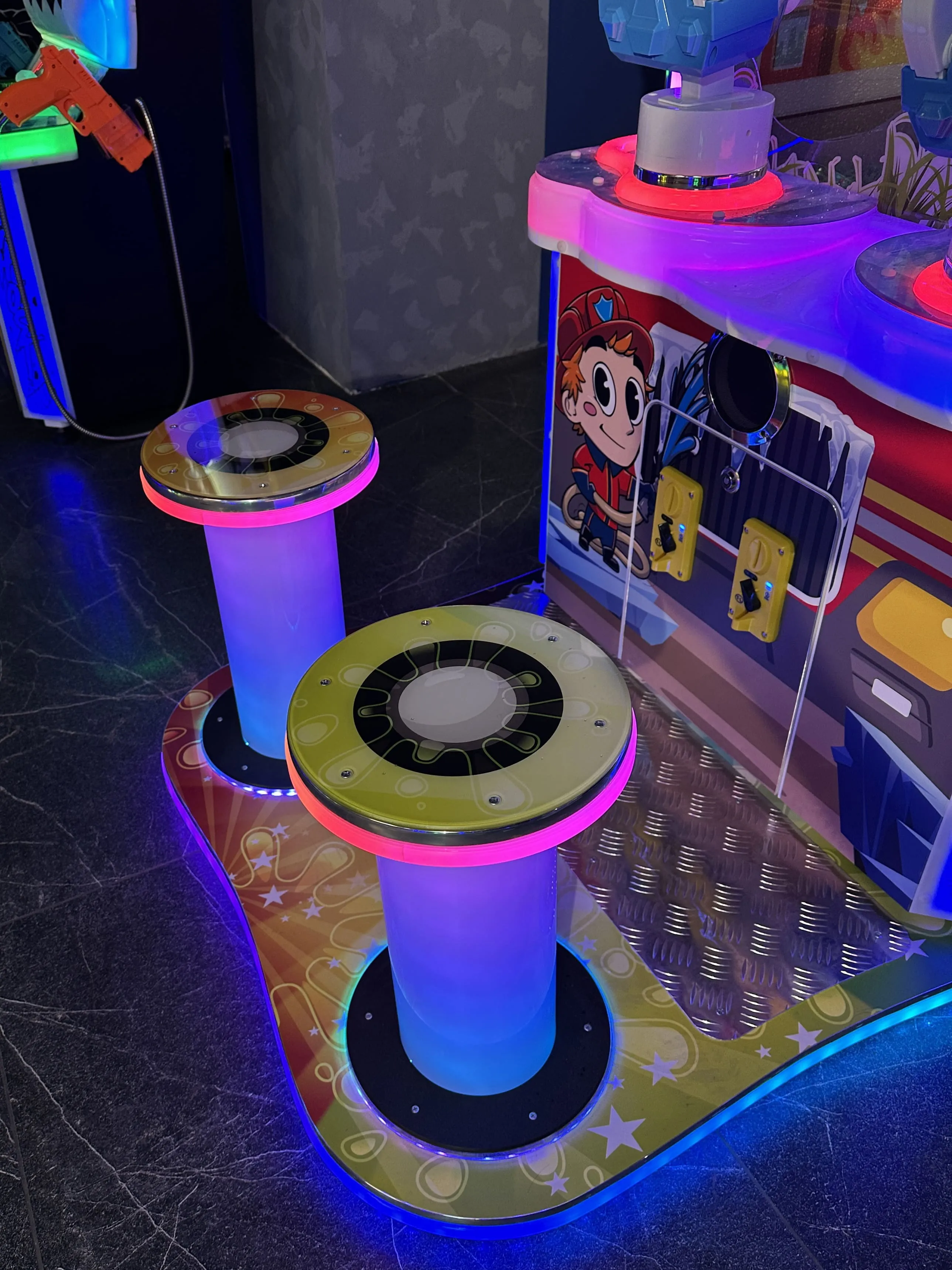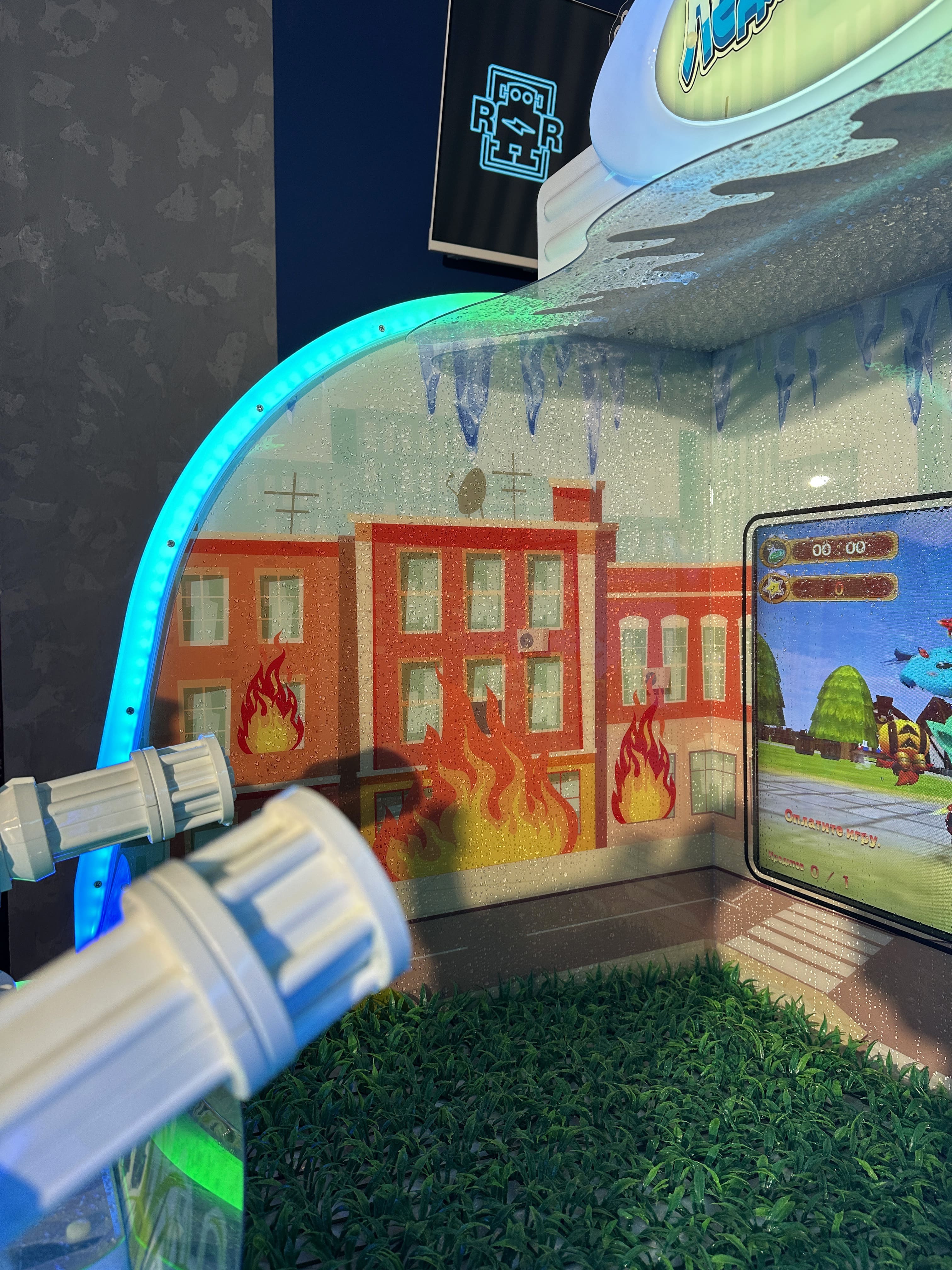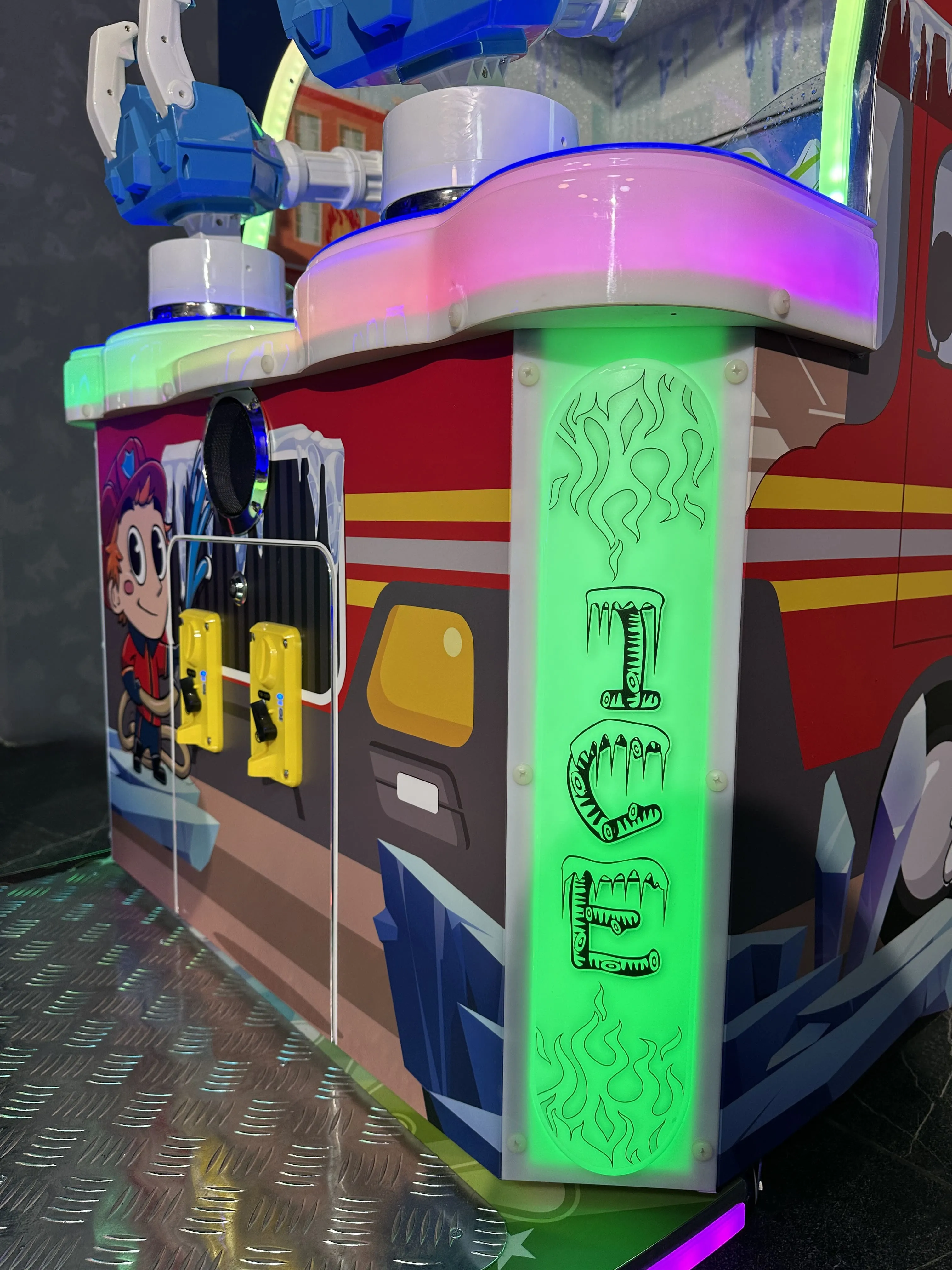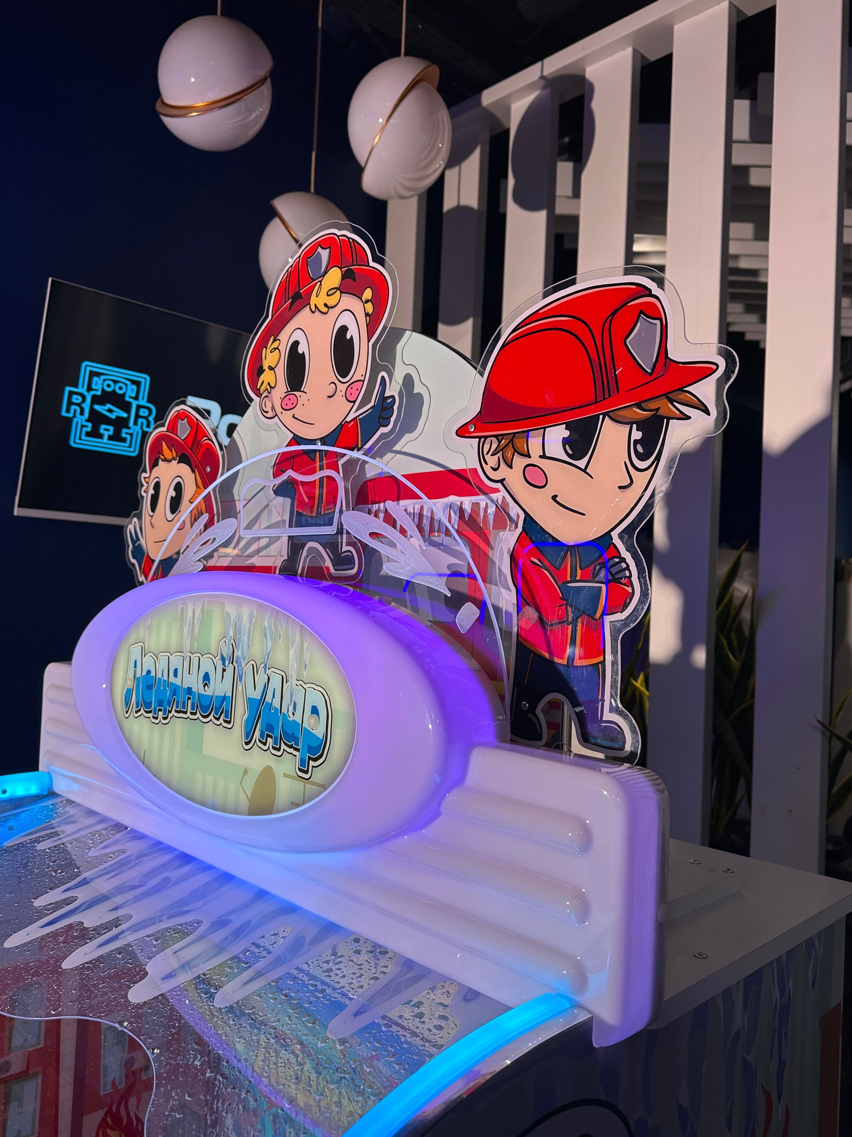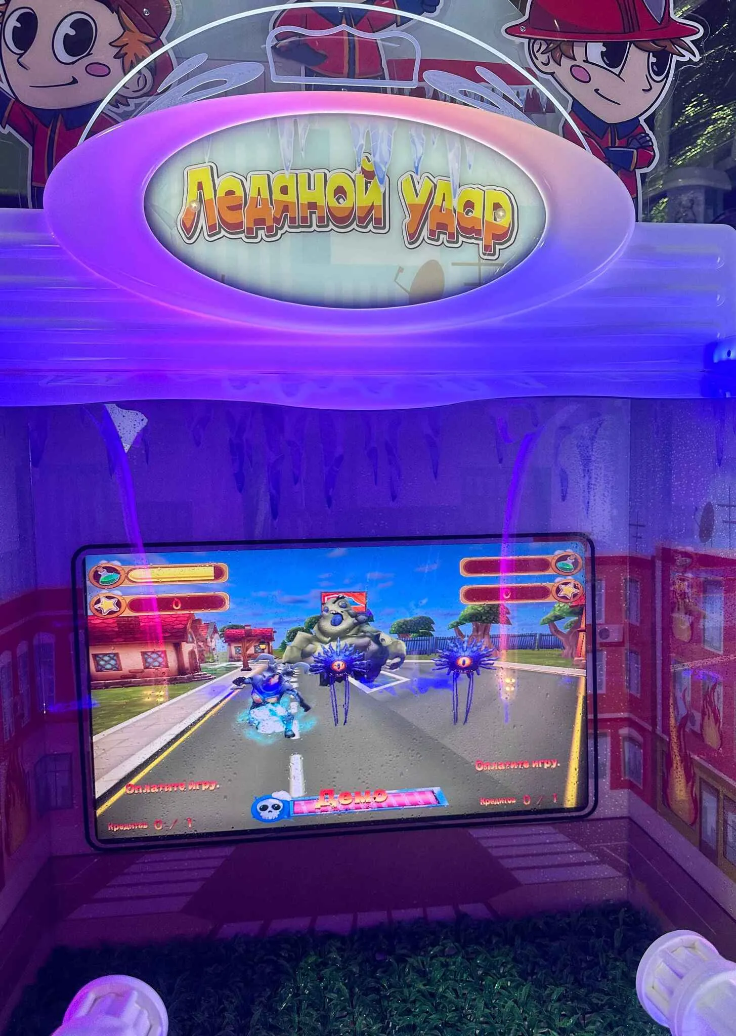 «Ледяной удар» — это яркий и динамичный водный тир, который моментально привлекает внимание детей и взрослых. Игроки вооружаются двумя настоящими водяными пушками и стреляют по виртуальным мишеням на большом экране 32". Необычный формат игры вызывает восторг у детей всех возрастов и обеспечивает высокую проходимость автомата в игровых зонах.