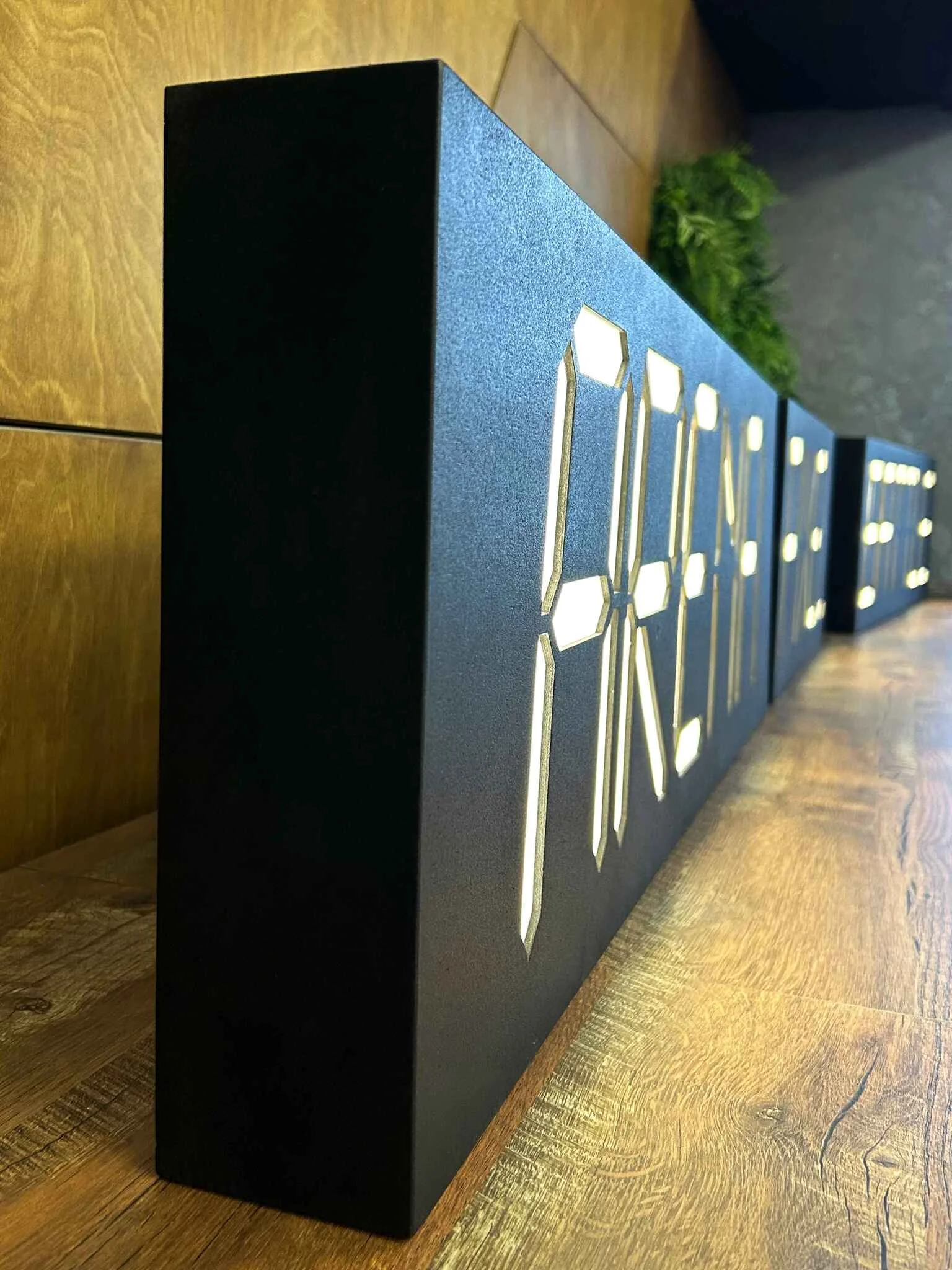 Вывеска окрашена износостойкой структурной черной краской, что придает ей строгий, но в то же время элегантный и приятный вид. Яркая и выразительная, она органично впишется в интерьер вашего помещения.