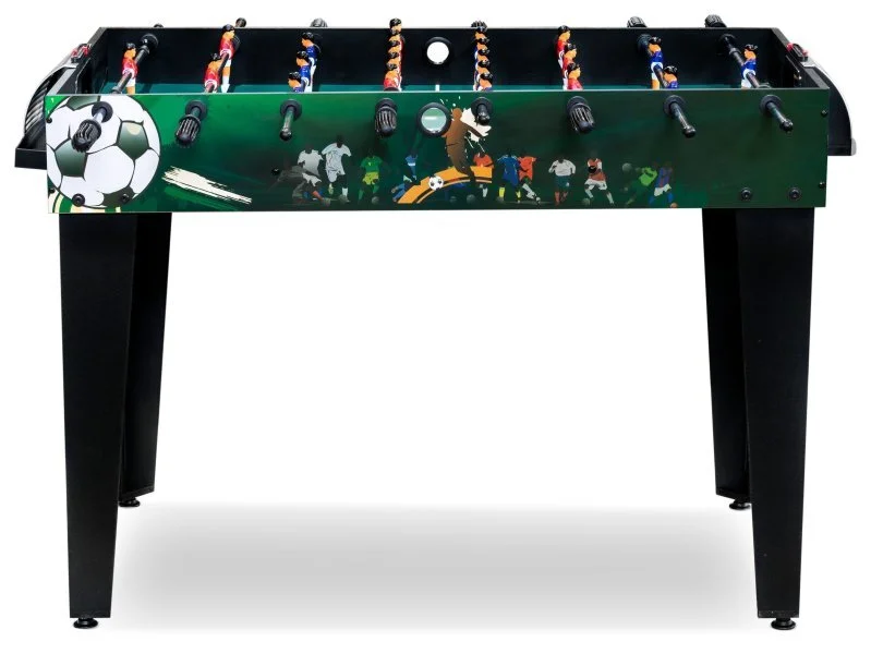 Габариты стола и небольшая игровая зона гарантируют удобство при эксплуатации. Игровые ворота вынесены за пределы игрового поля, что придаст еще больше азарта во время игры, благодаря чему наш настольный футбол никогда не потеряет актуальности!