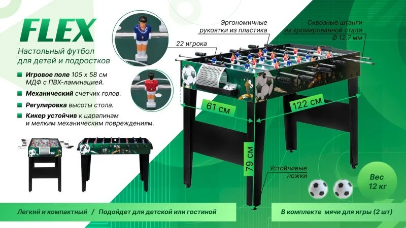 Настольный футбол (кикер) «Flex» (зеленый)