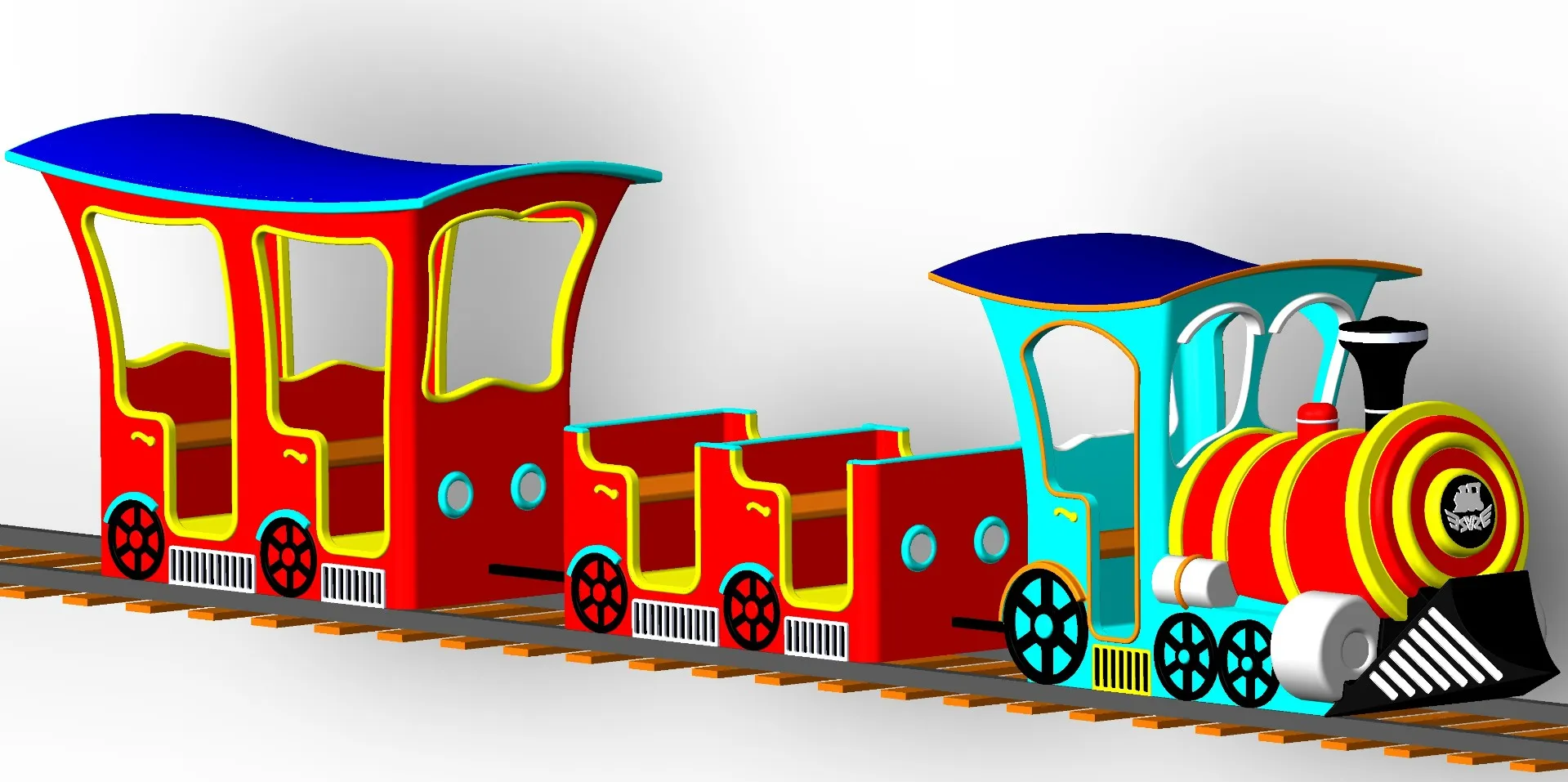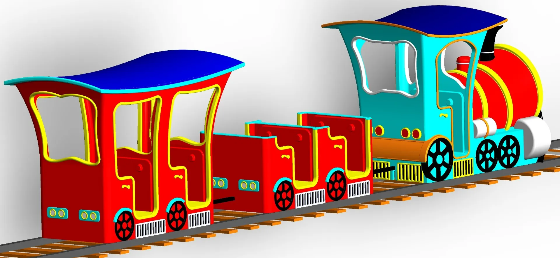 - Дизайн: паровозик в сказочном стиле с вагончиками