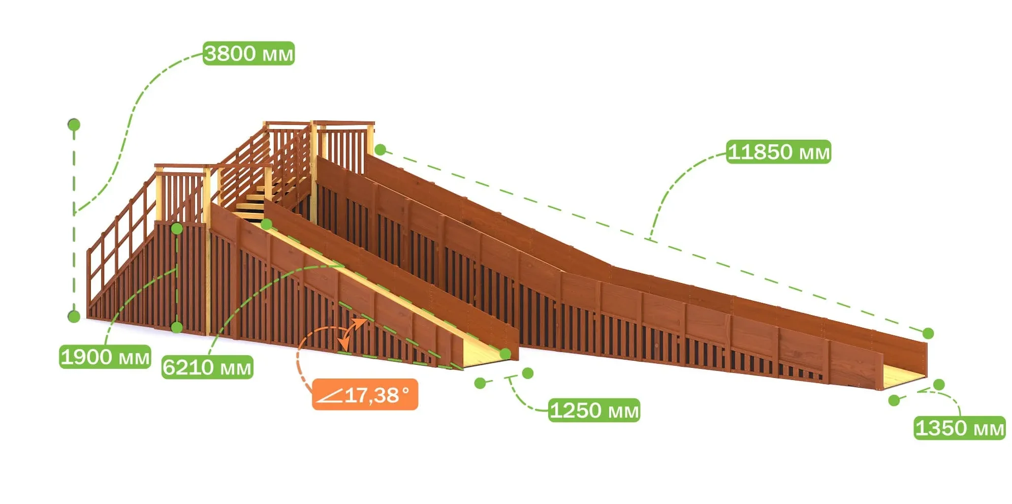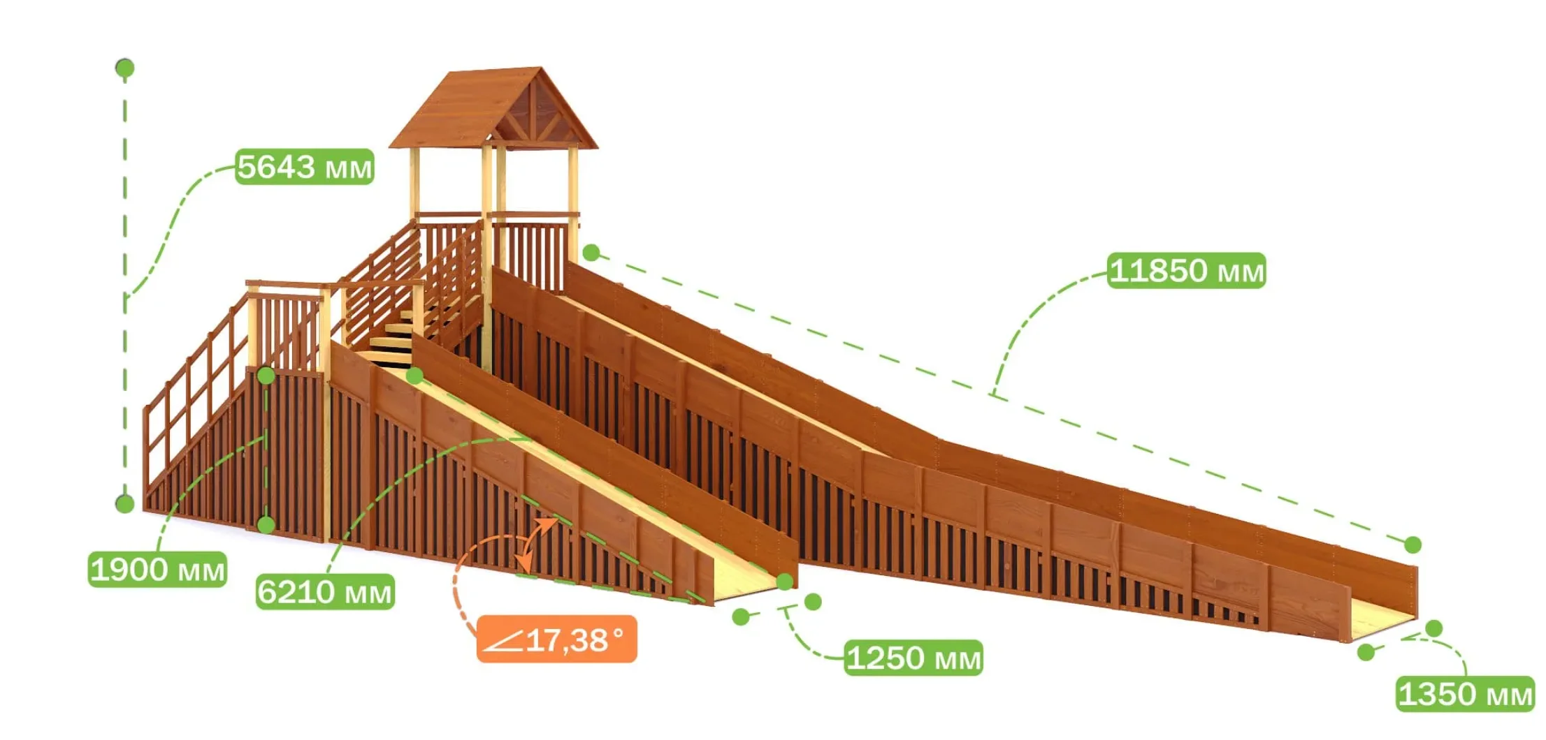 - Длина ската № 1 – 6 210 мм, №2 – 11 850 мм