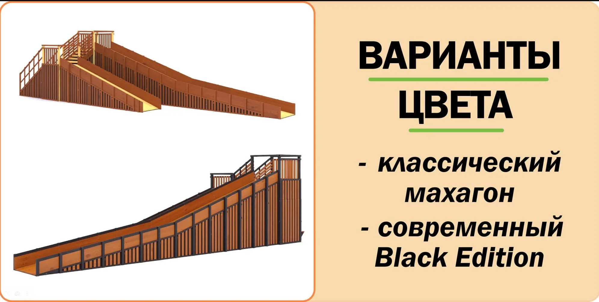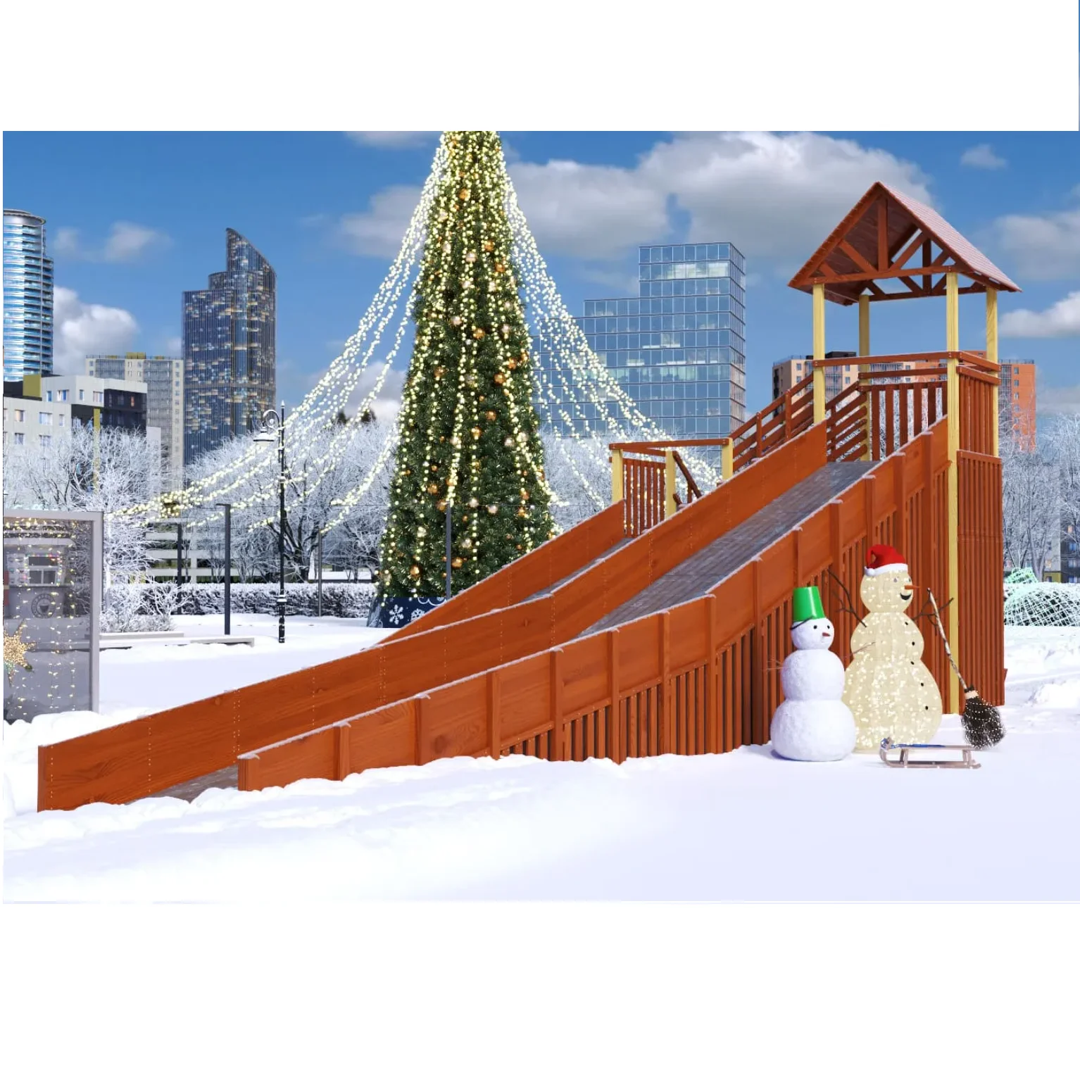 Савушка Зима 14 (Махагон / Сосна) - зимняя горка с закрытыми фасадами, созданная в премиальной архитектурной стилистике. Монолитный внешний вид, чистые линии и защищённая конструкция обеспечивают аккуратность и долговечность на весь сезон.