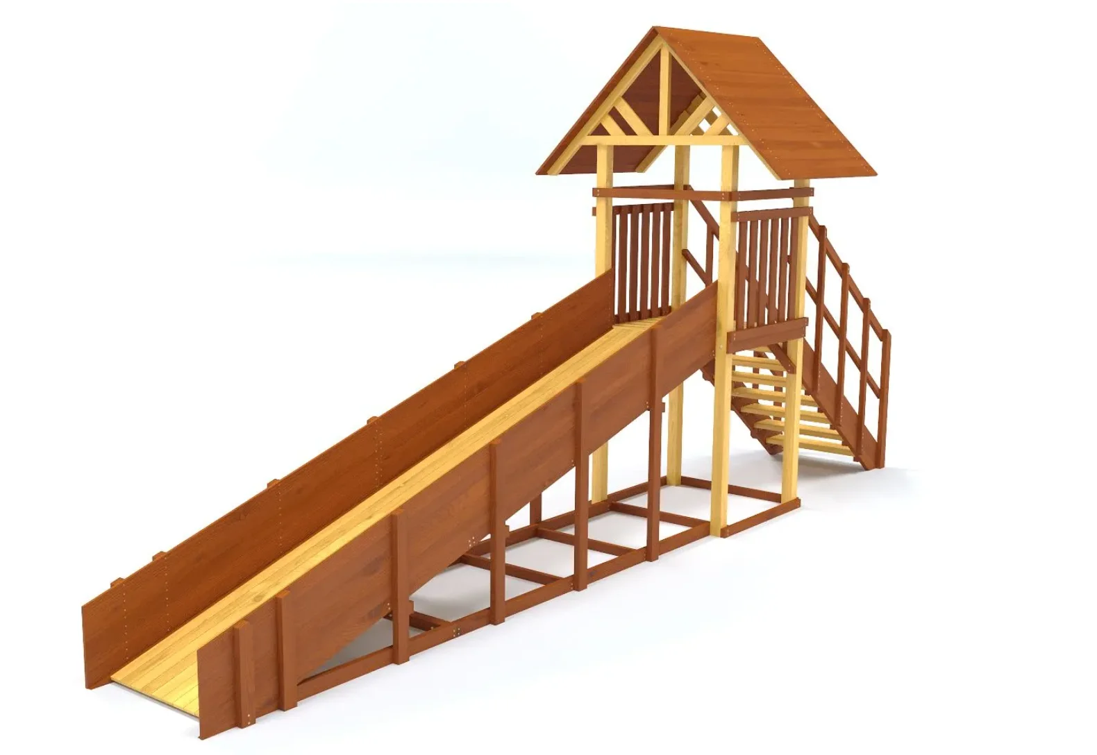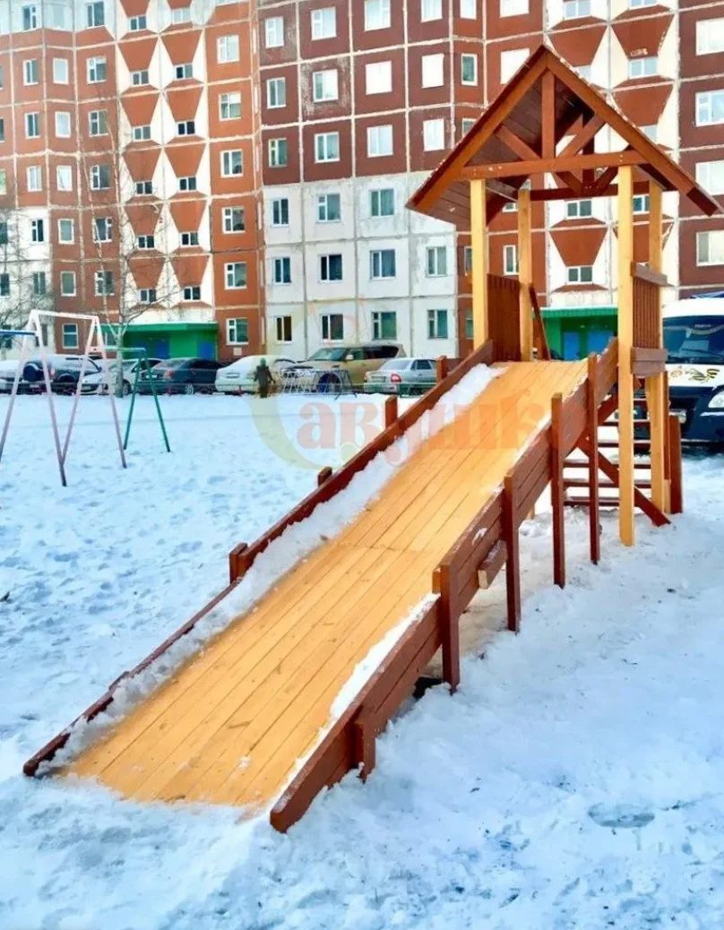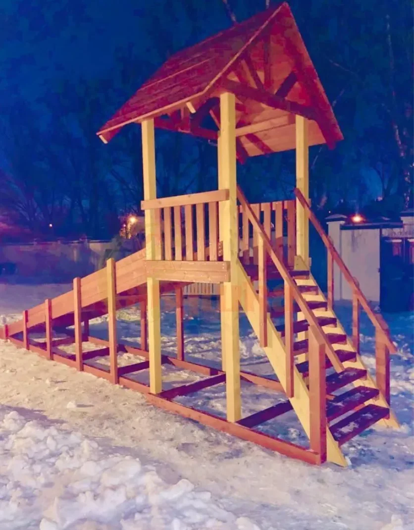 Савушка Зима 5 — удачное решение для дачи и частного дома. Скат длиной 5 метров и крыша над платформой делают эту горку удобной и безопасной в любую погоду. Конструкция выполнена из клееного бруса, соответствует ГОСТ и имеет Декларацию о соответствии ТР ЕАЭС 038/2016, поэтому её можно устанавливать и в общественных местах.