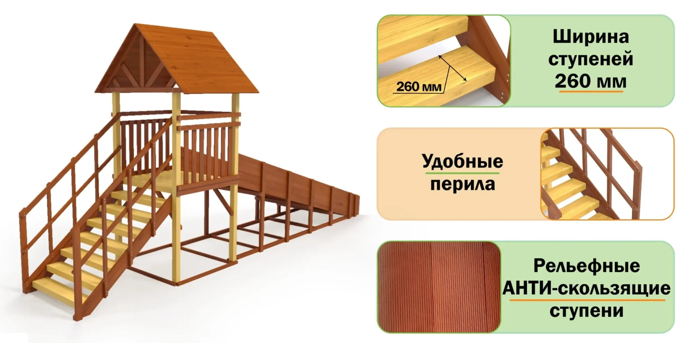 - Прочные перила и бортики по всей длине.