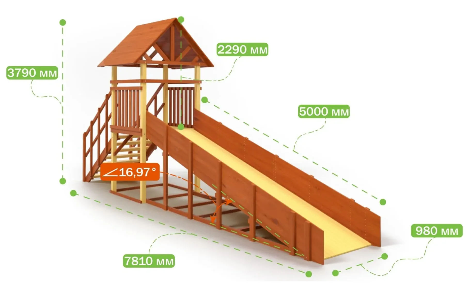 - Компактная, но удобная горка с длиной ската 5 м.